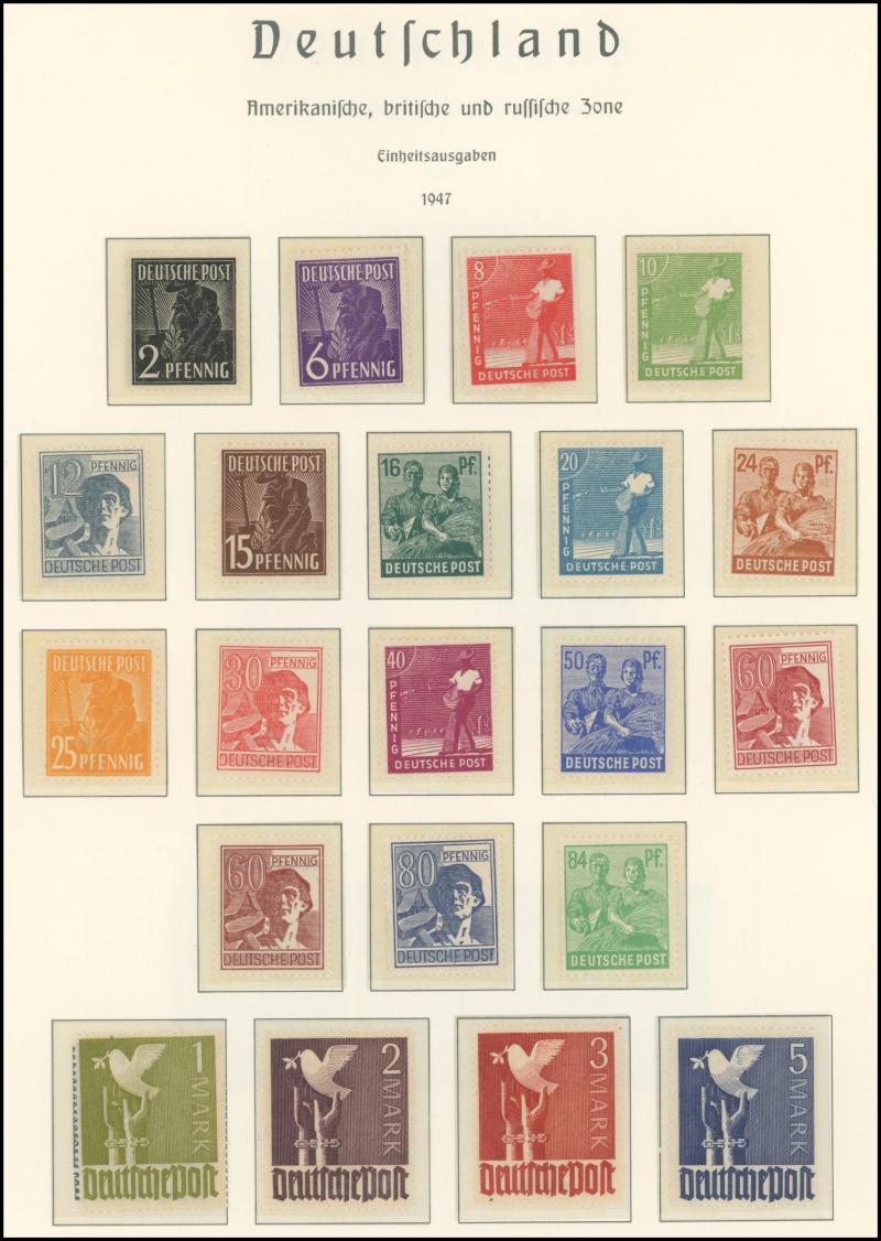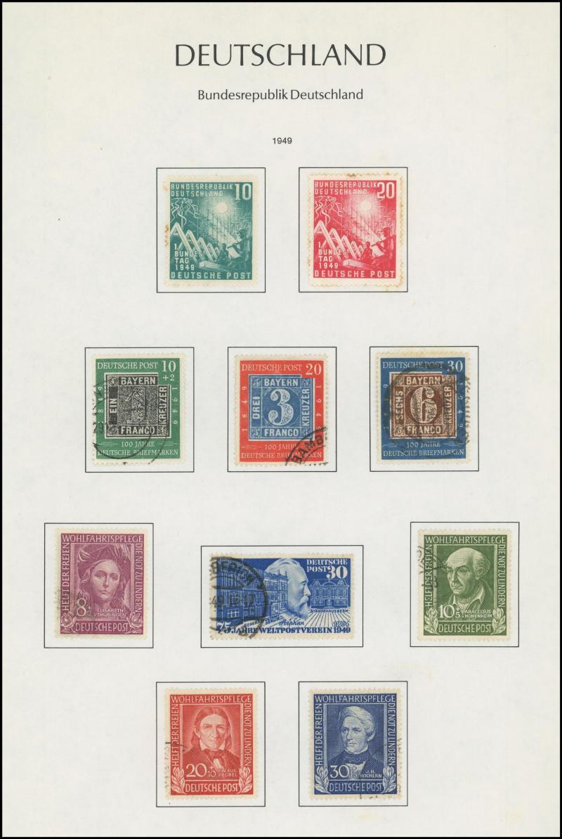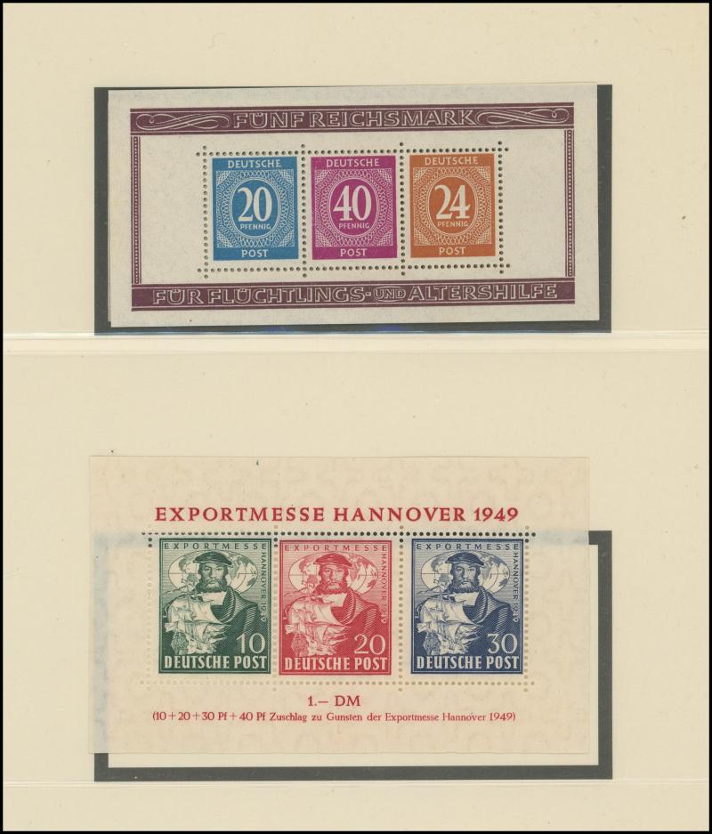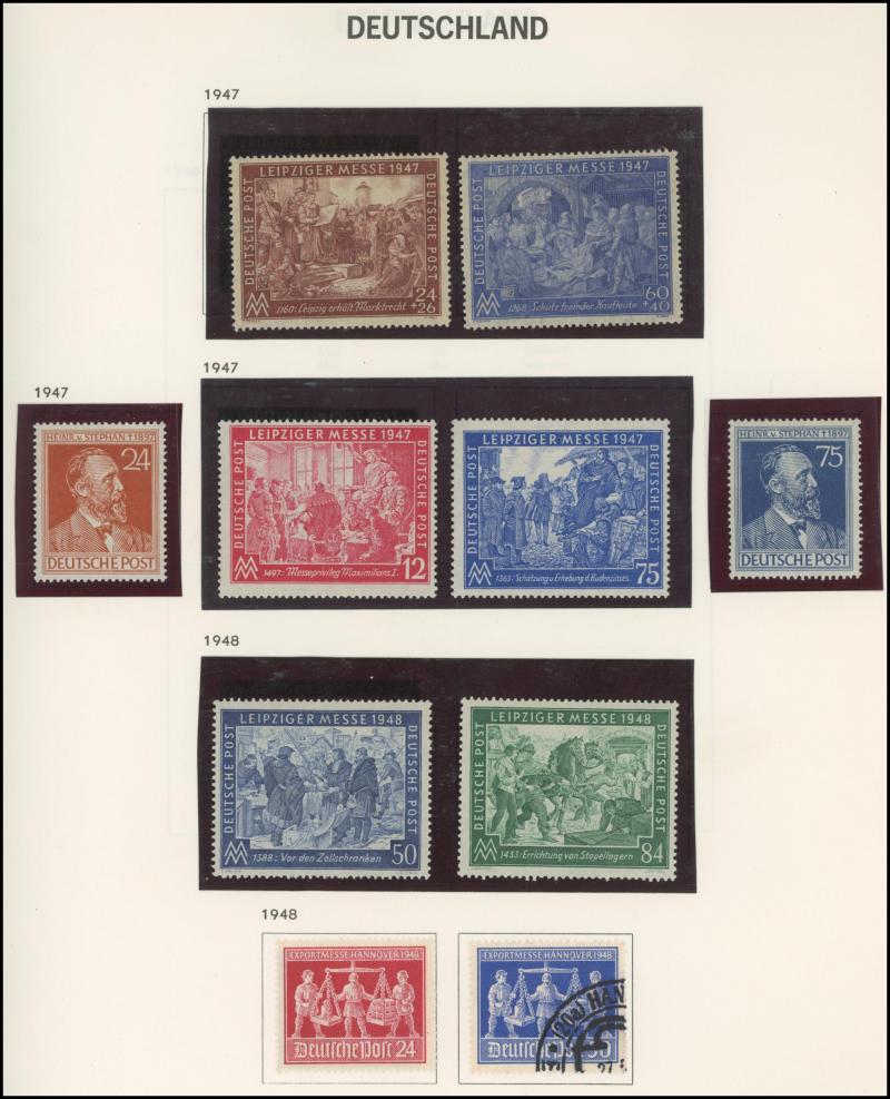 Germany noted 1949 Stamp Centenary used (aging), 1949 Relief used, Berlin noted 1949 Relief set * (aging), 1951-53 Bells complete (aging), Allied Zones noted 1946 Numerals M/S **, 1949 Hannover Fair set and M/S *, also Third Reich through to modern