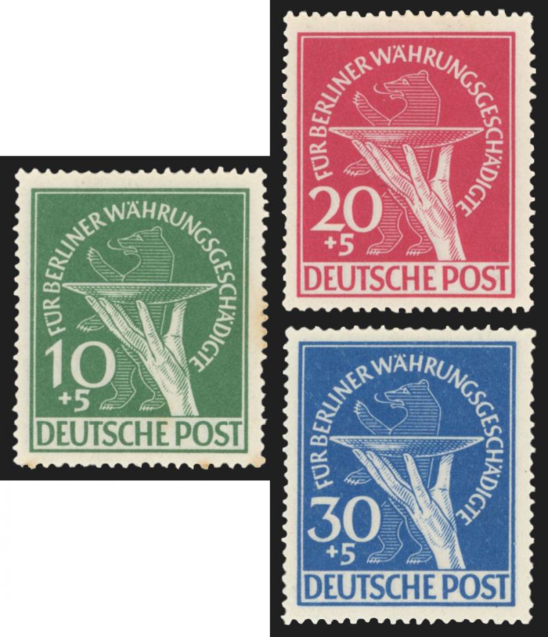 BERLIN: 1949 Berlin Relief Fund 10pf+5pf to 30pf+5pf Mi 68-70, each tied to small piece by 'BERLIN SW11/31.12.49-21/ av ' cds, Cat