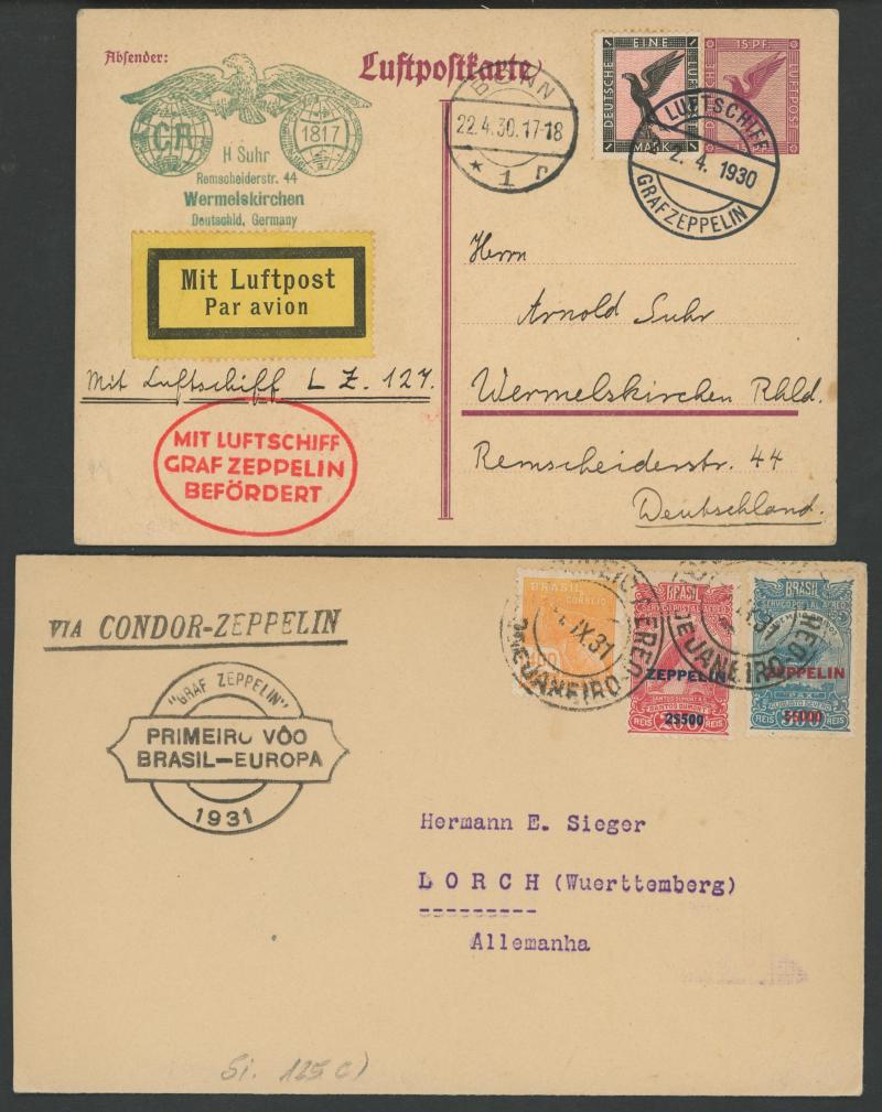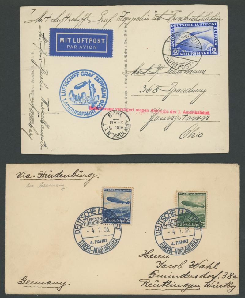 POSTAL HISTORY: 1929-38 Zeppelin flights comprising 1929 (May 15) PPC to USA with 2mk Zeppelin tied by