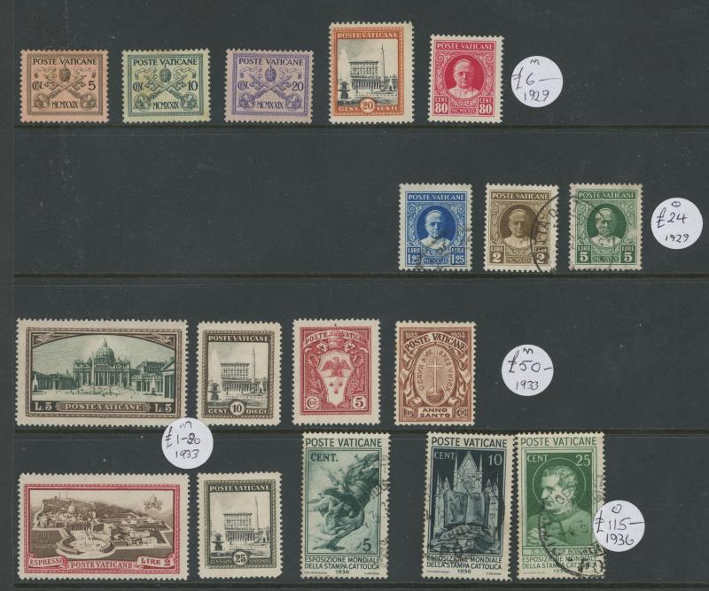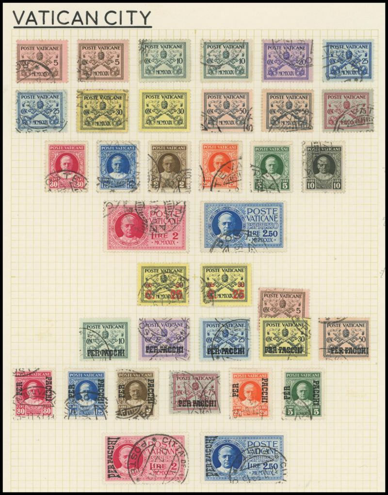 VATICAN CITY: 1929-1954 fine used on leaves including 1929 to 10L and Express 2L & 2.50L, 1931 Postage Due & Parcel Post sets, 1933