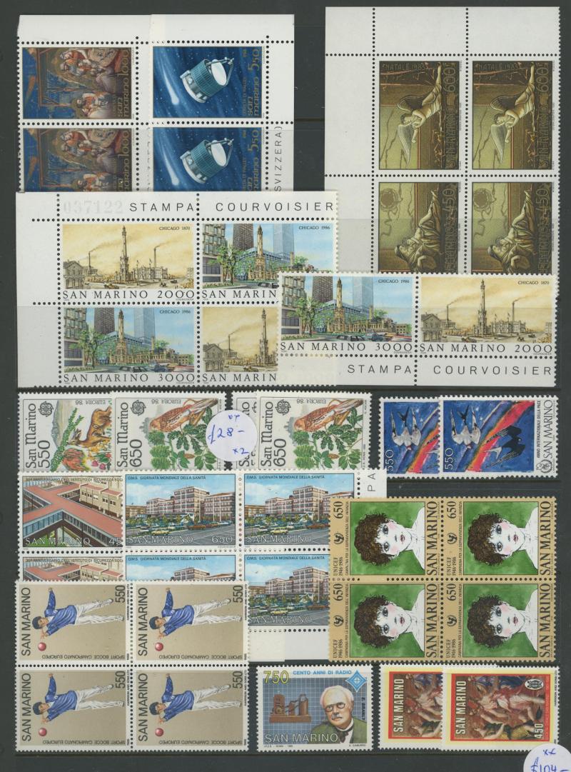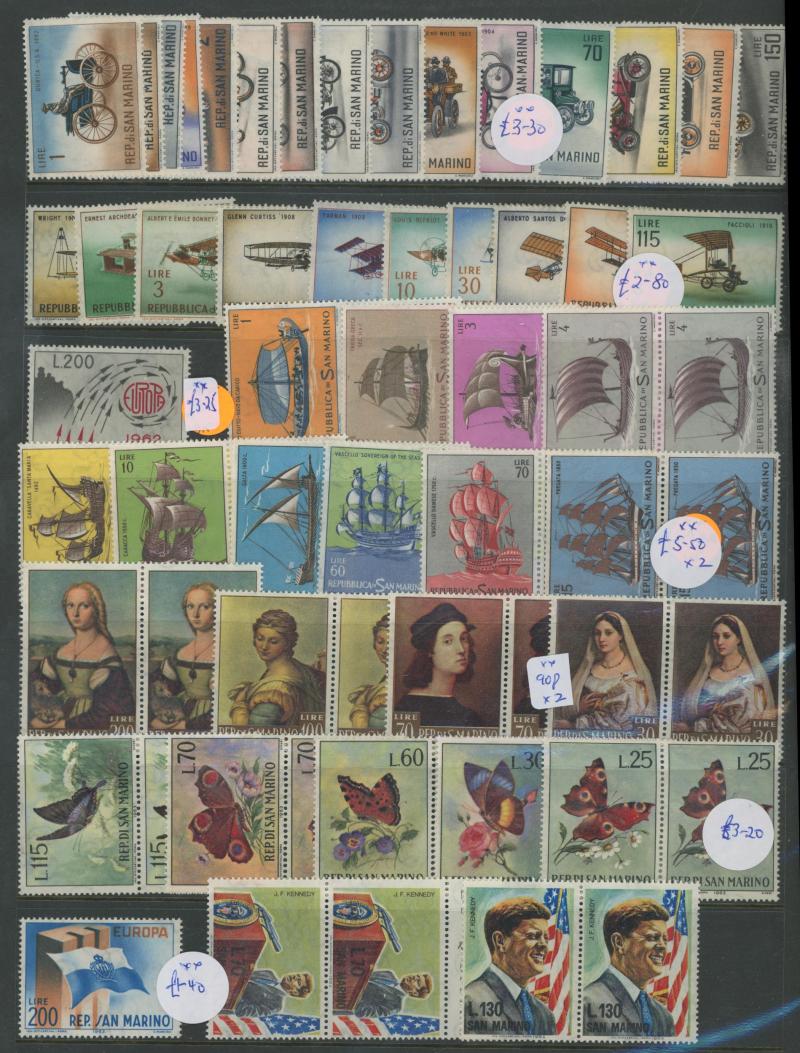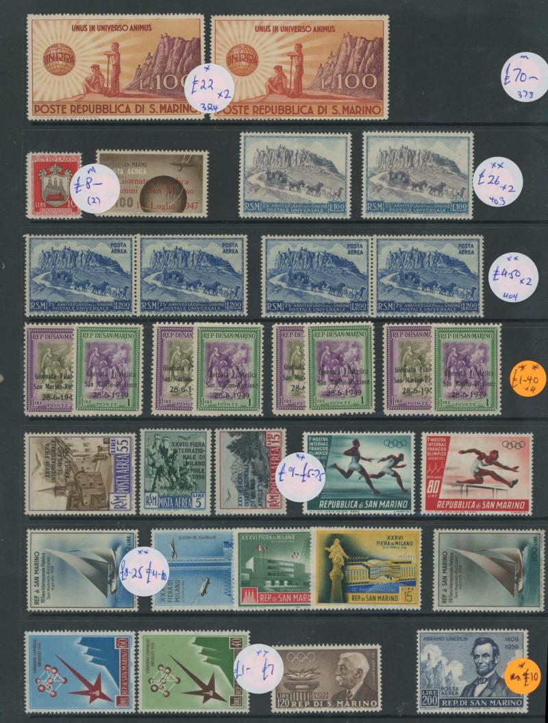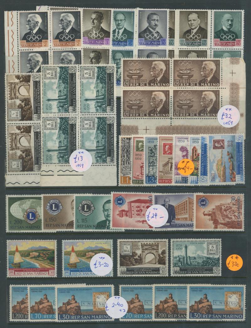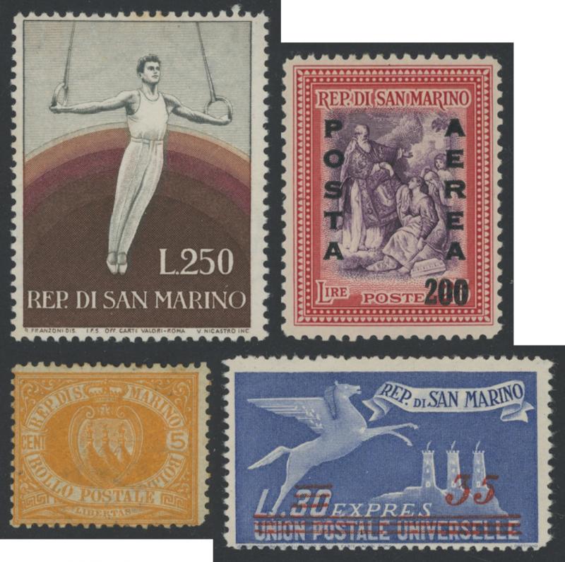 SAN MARINO: 1890-1986 mint collection on hagners including 1890 5c yellow (apparently unused), 1955 250L gymnastics (** toned gum),
