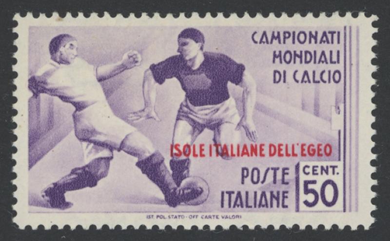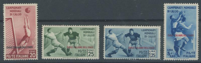 DODECANESE ISLANDS: 1934 World Football Championships 20c to 5L+2.50L 'Postage' issues SG 128-132, faintest traces of having been