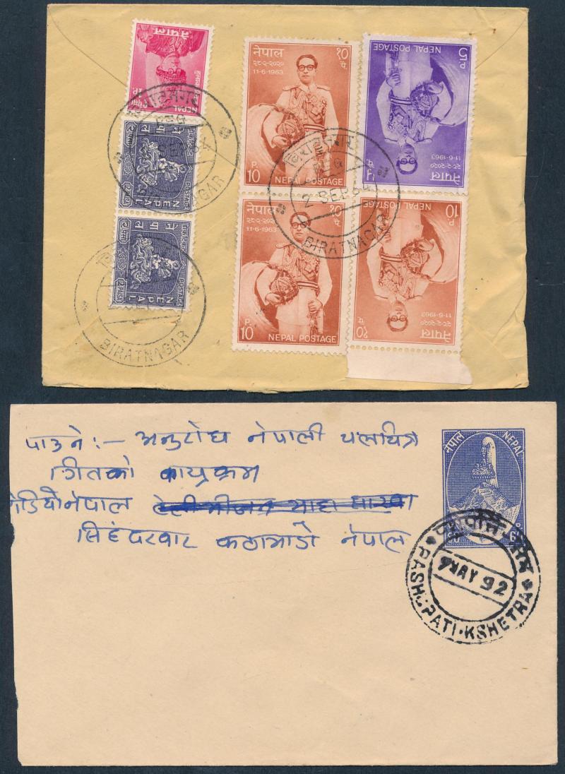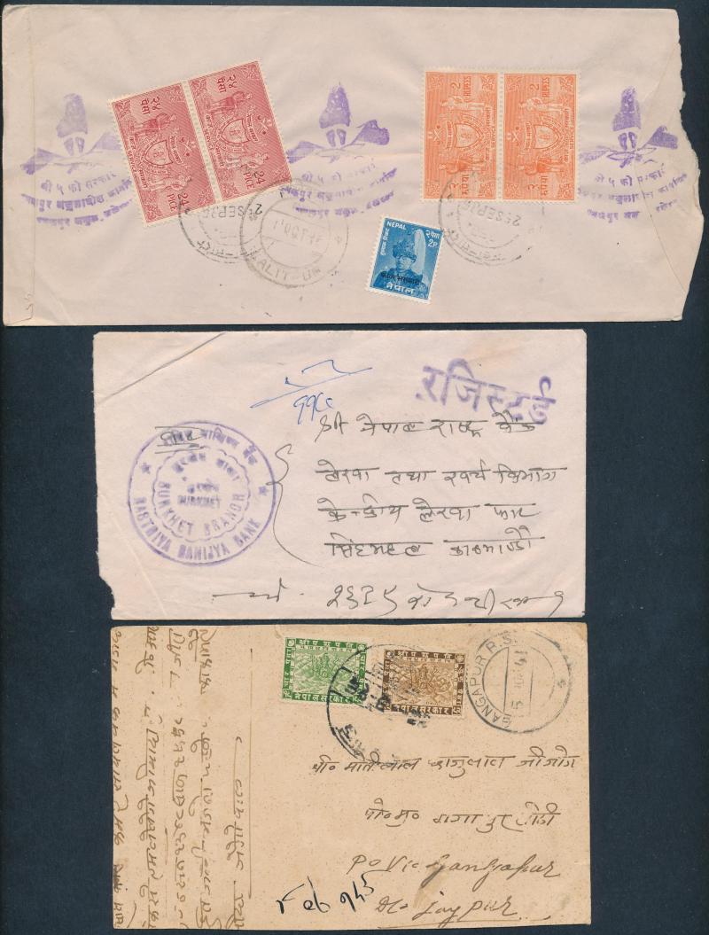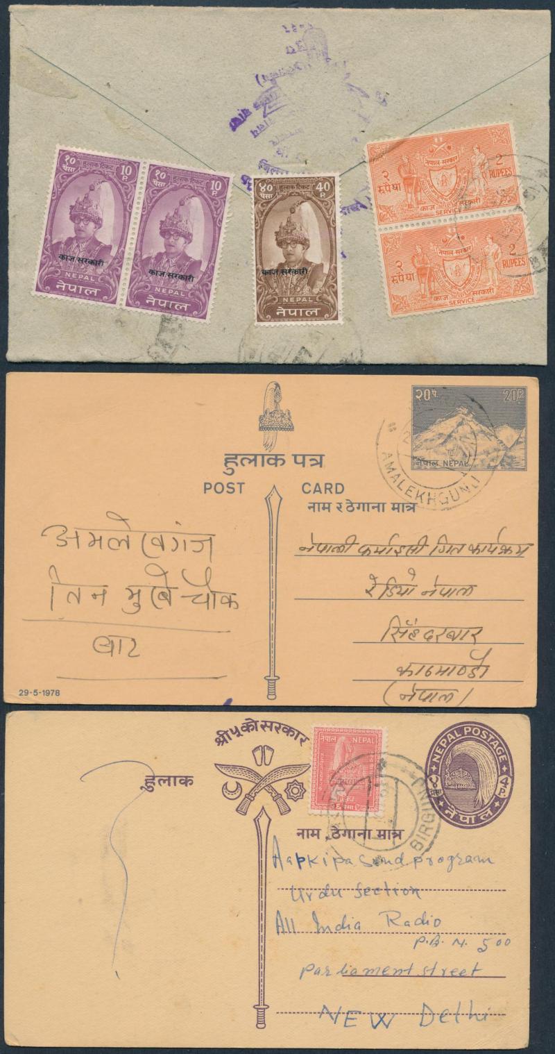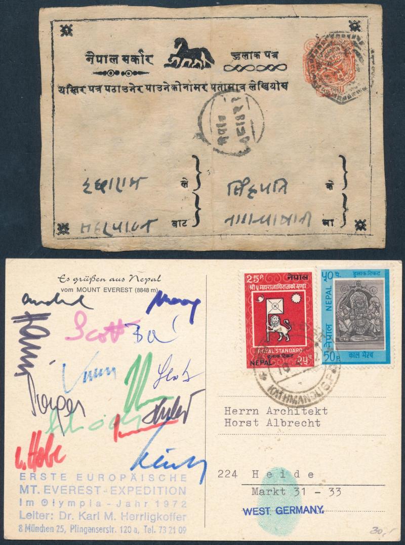 modern and from post offices across the country, many made from native papers, noted registered, official & airmail items, also a few 1960s-70s Everest Expedition souvenir postcards signed by mountaineers, generally fine to very fine.