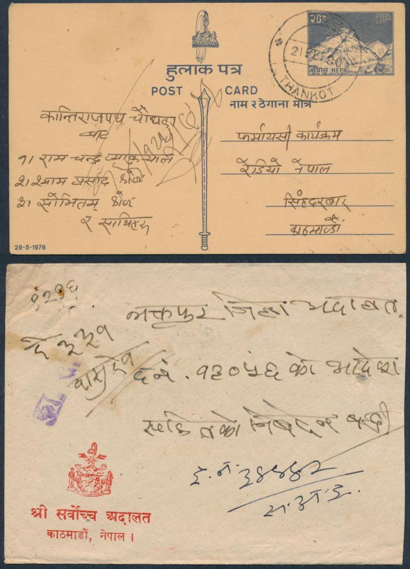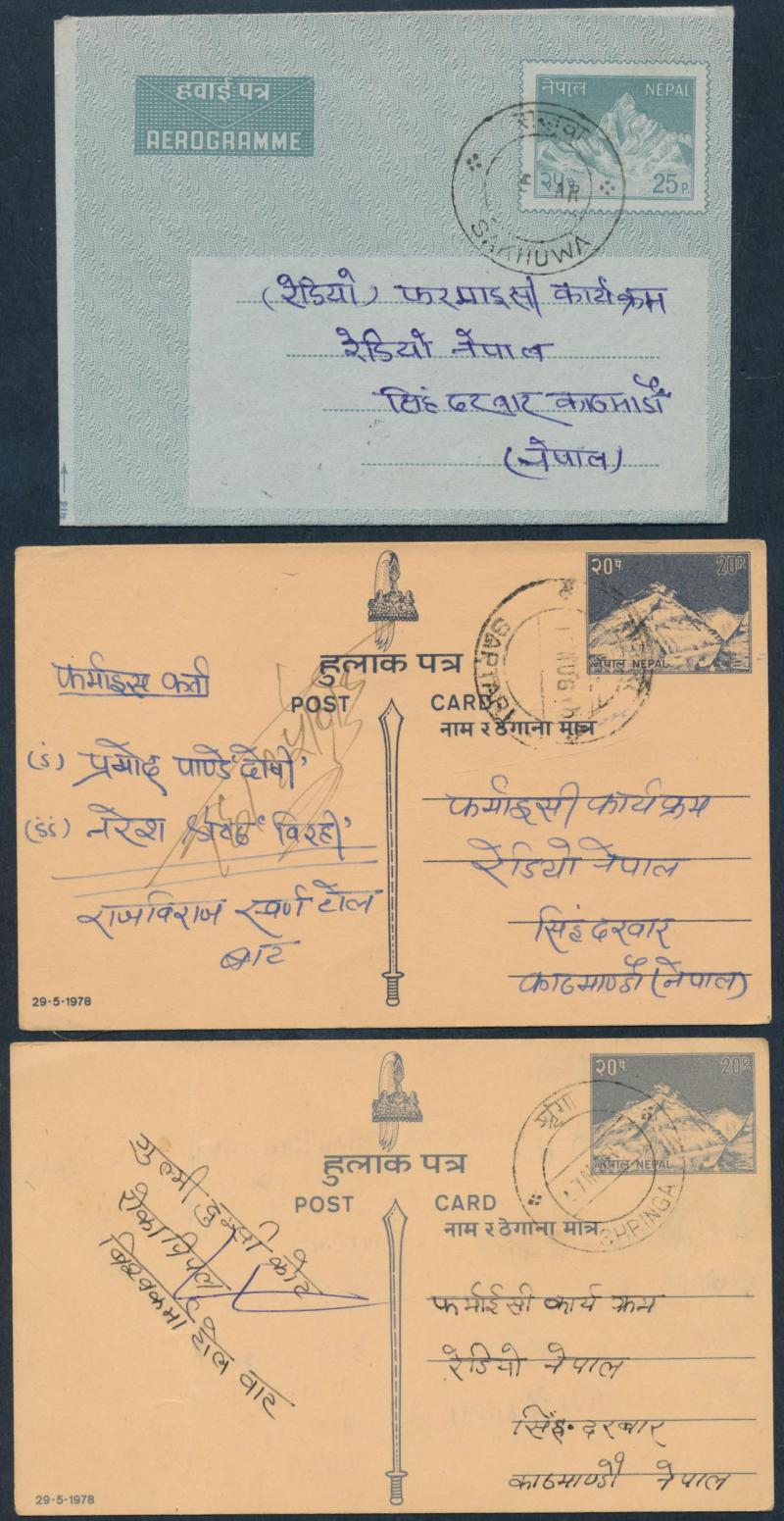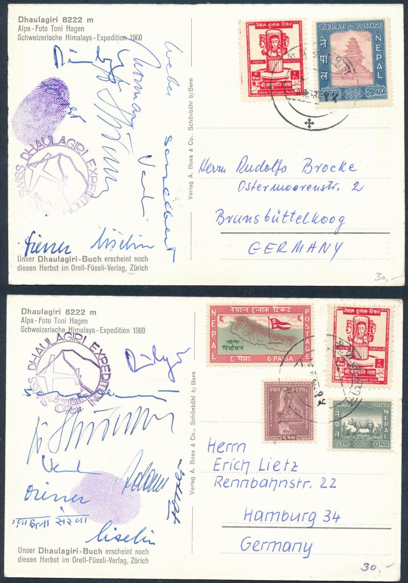 modern and from post offices across the country, many made from native papers, noted registered, official & airmail items, also a few 1960s-70s Everest Expedition souvenir postcards signed by mountaineers, generally fine to very fine.