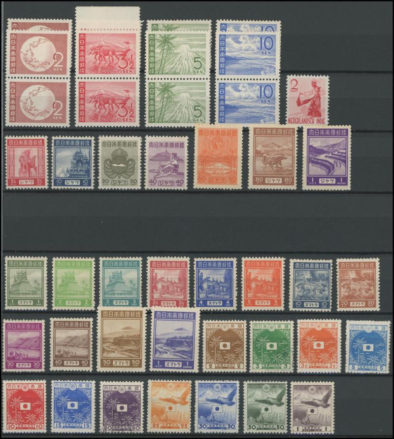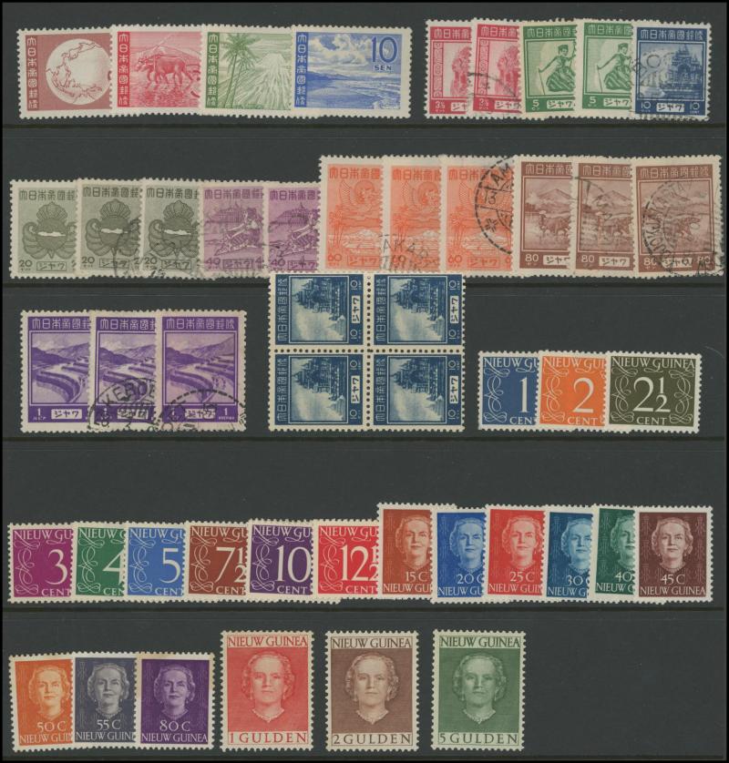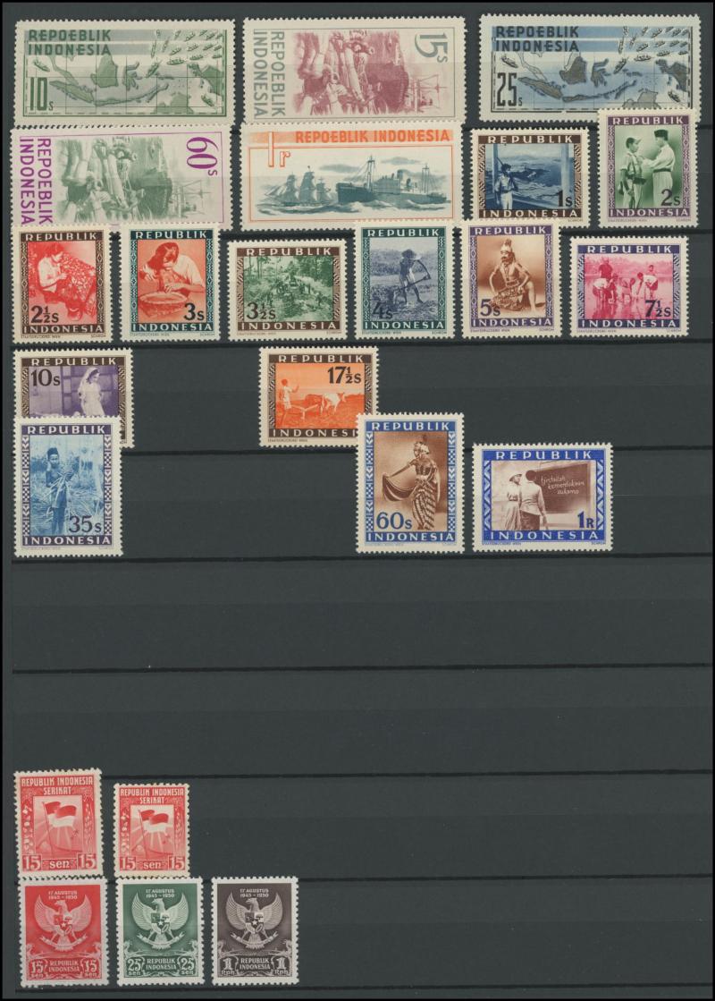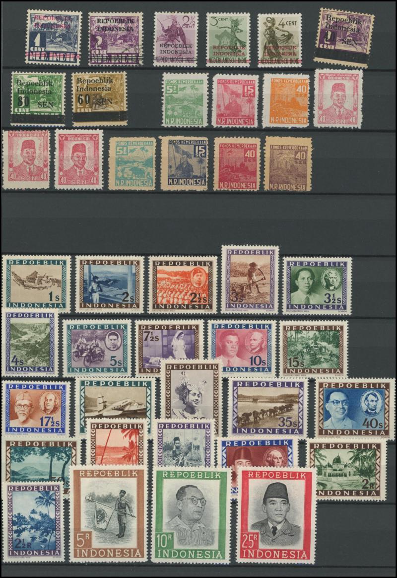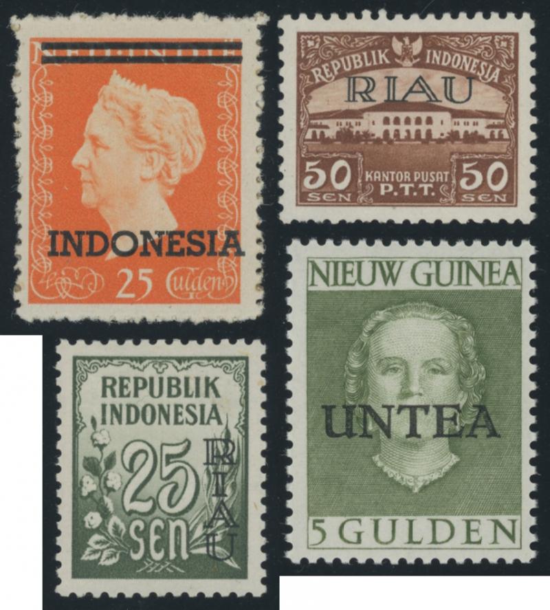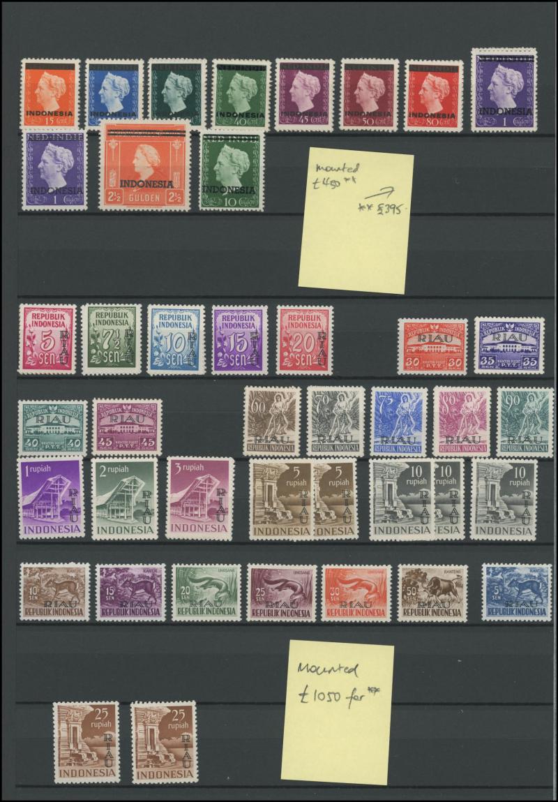 25r, 1954 'RIAU' Overprints to 25r (the 50s without gum), etc, mostly very lightly mounted; also Dutch New Guinea including 'UNTEA' Overprint set unmounted; and some Japanese Occupation issues; generally very fine to superb.