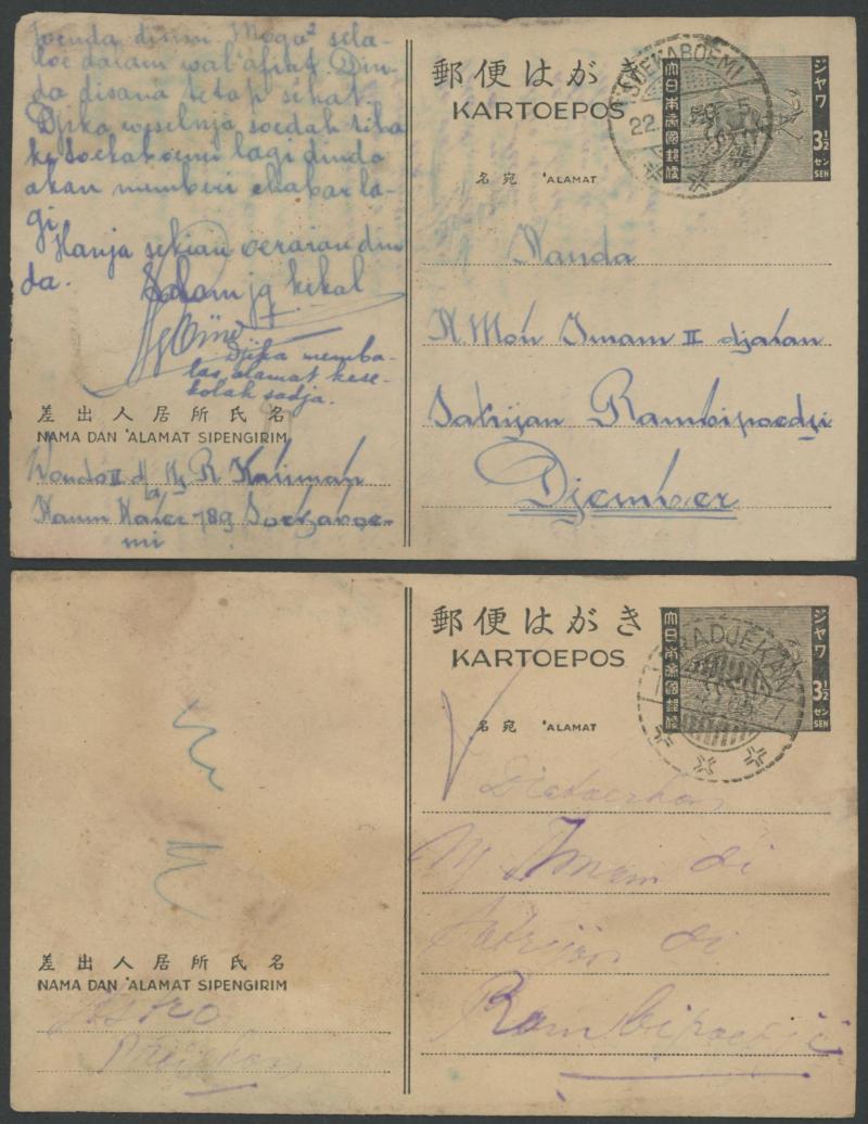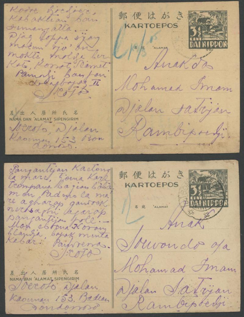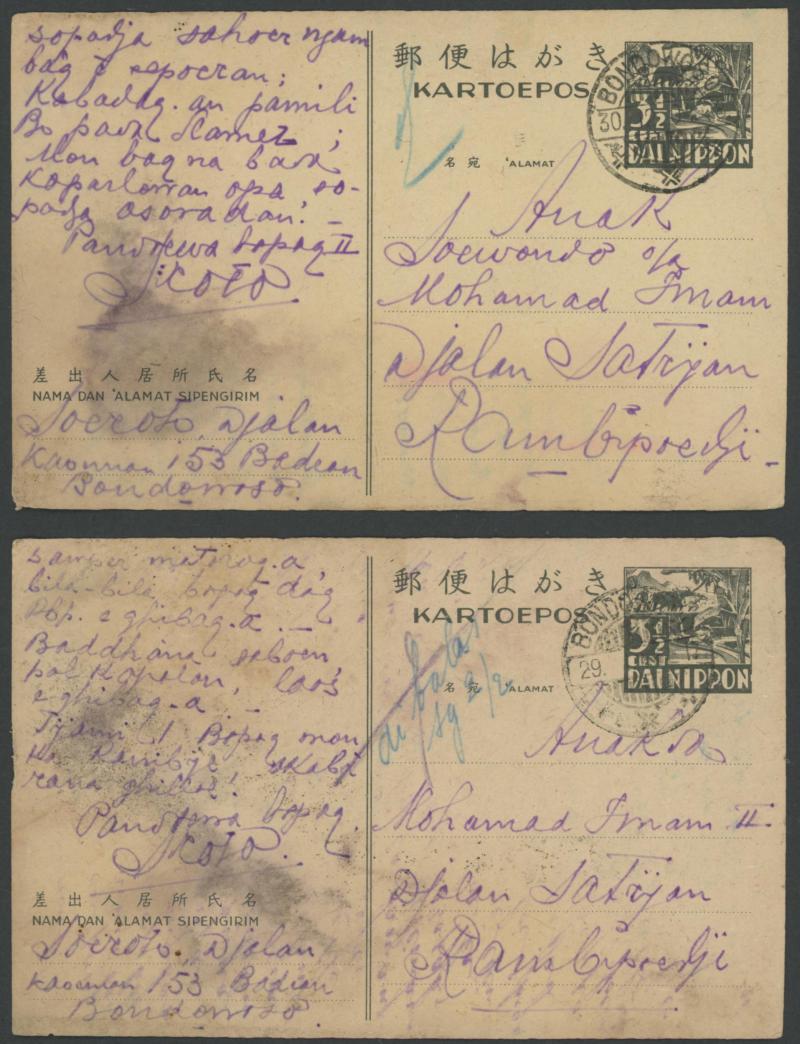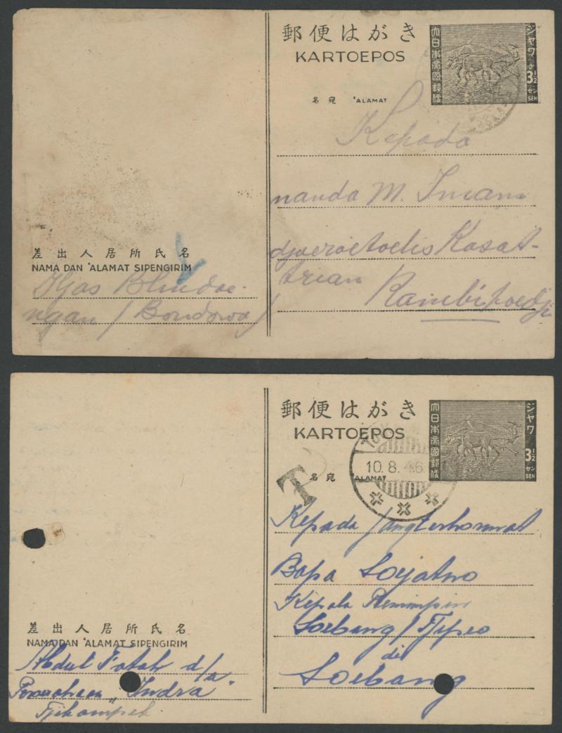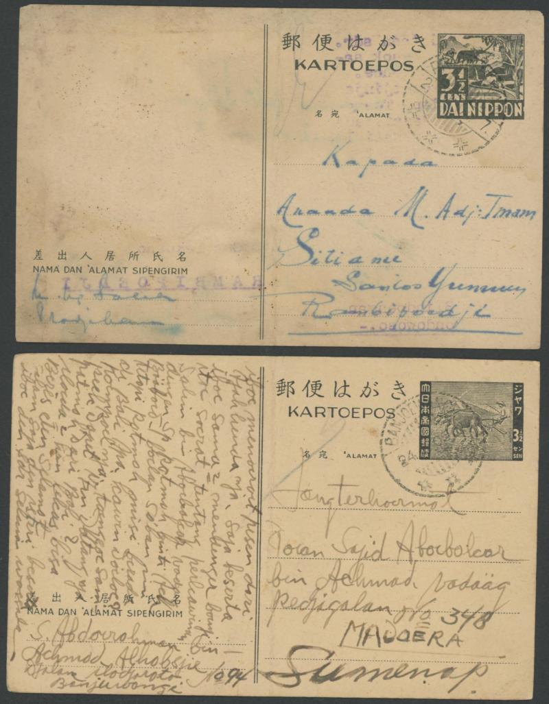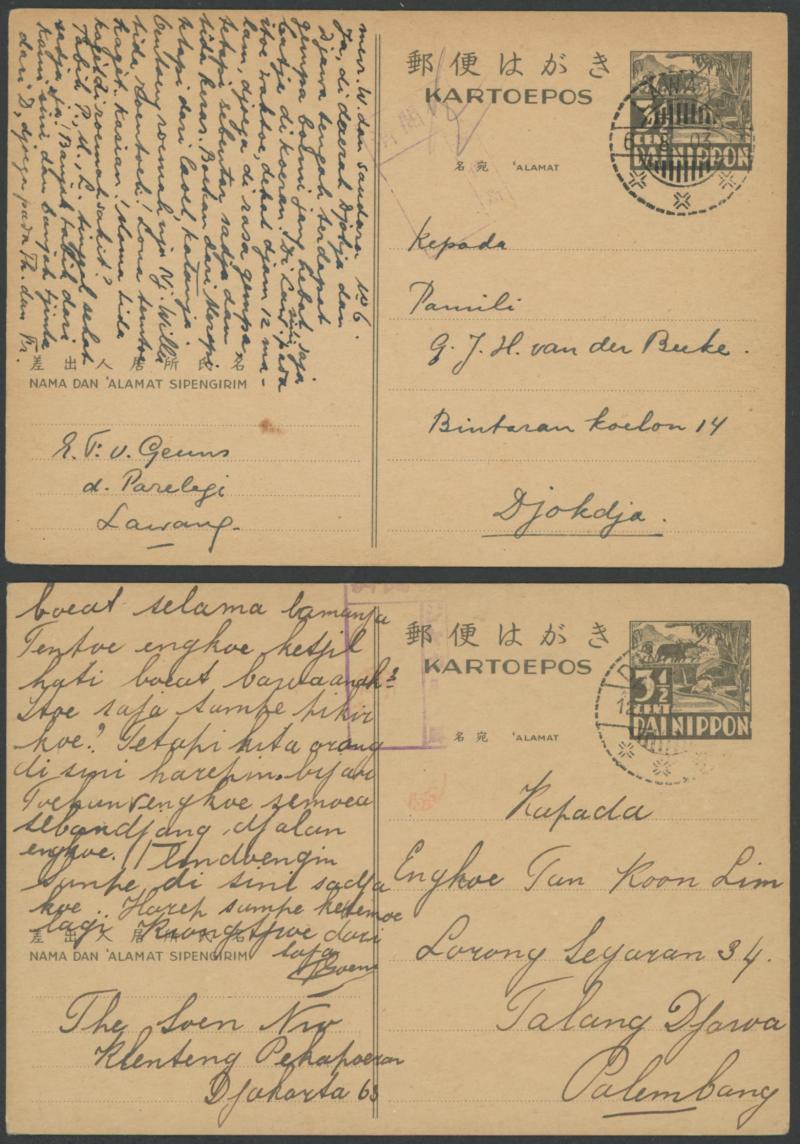 tied by Soerabaja cds, and two correspondence postcards with unoverprinted NEI 3½c Scenes, then a batch of Postal Cards including one unoverprinted NEI 3½c Scenes, 'DAI NIPPON' 3½c Scenes large-format x4 on various stocks and small-format x13, Oxen