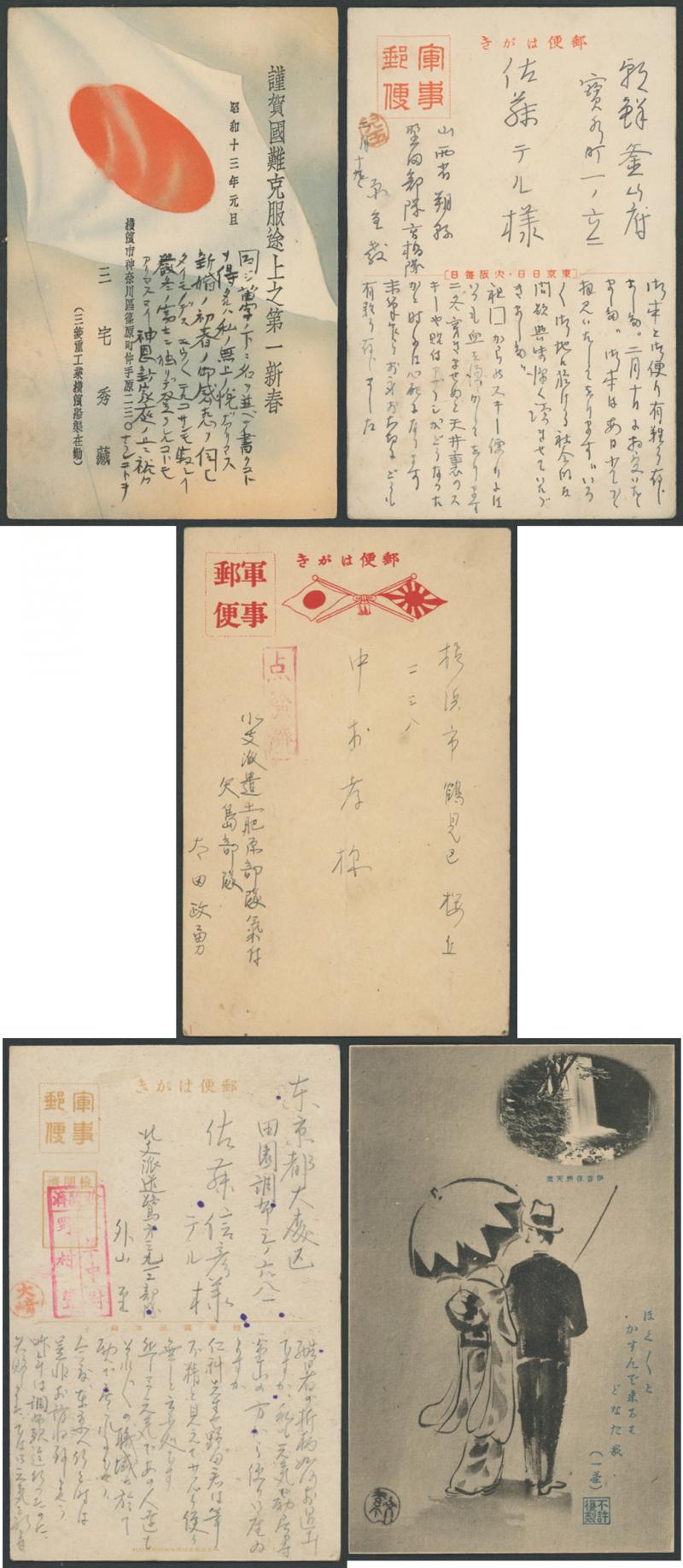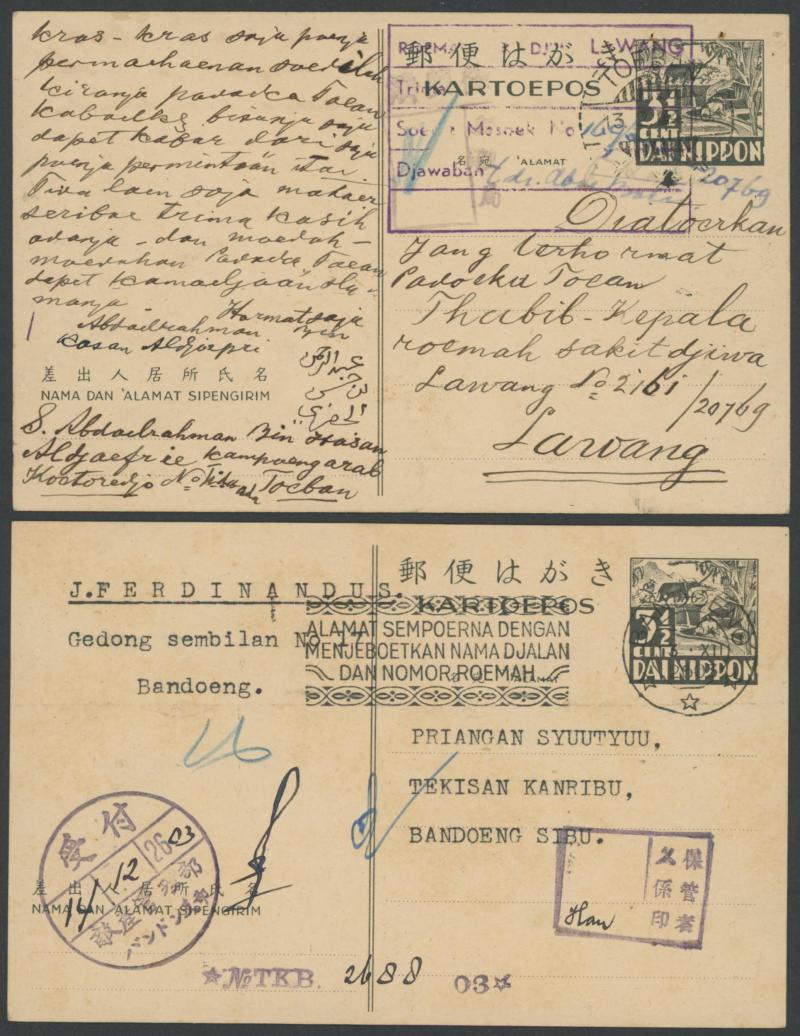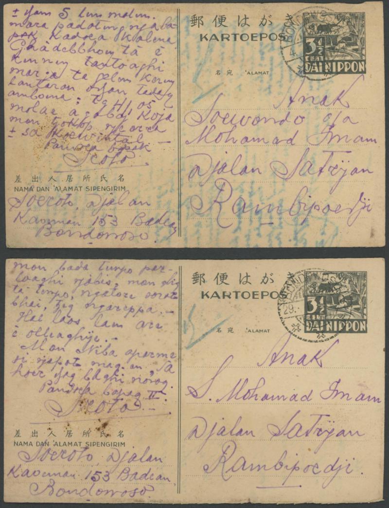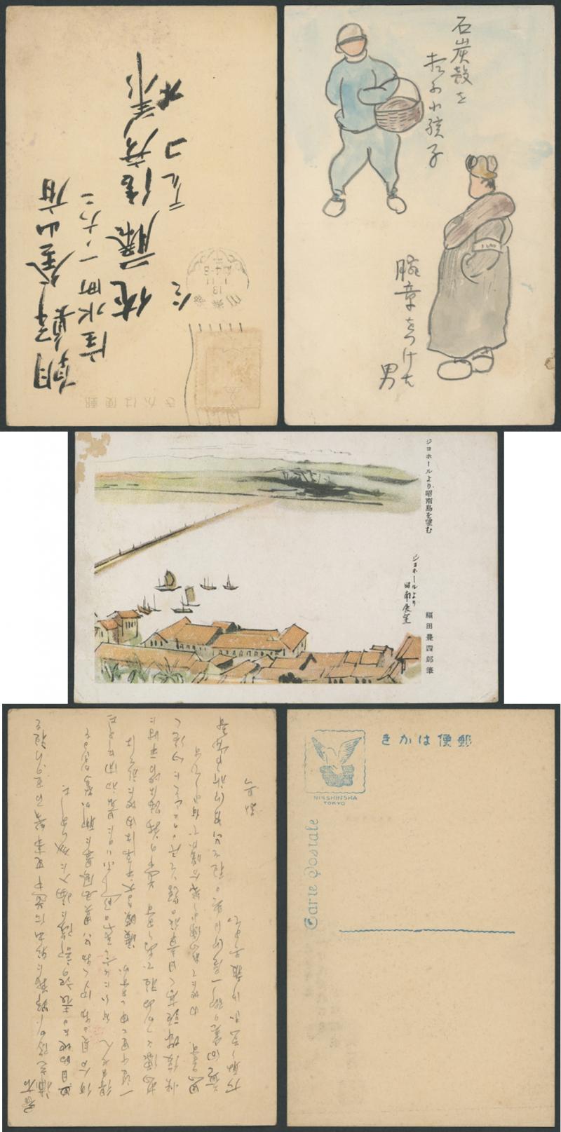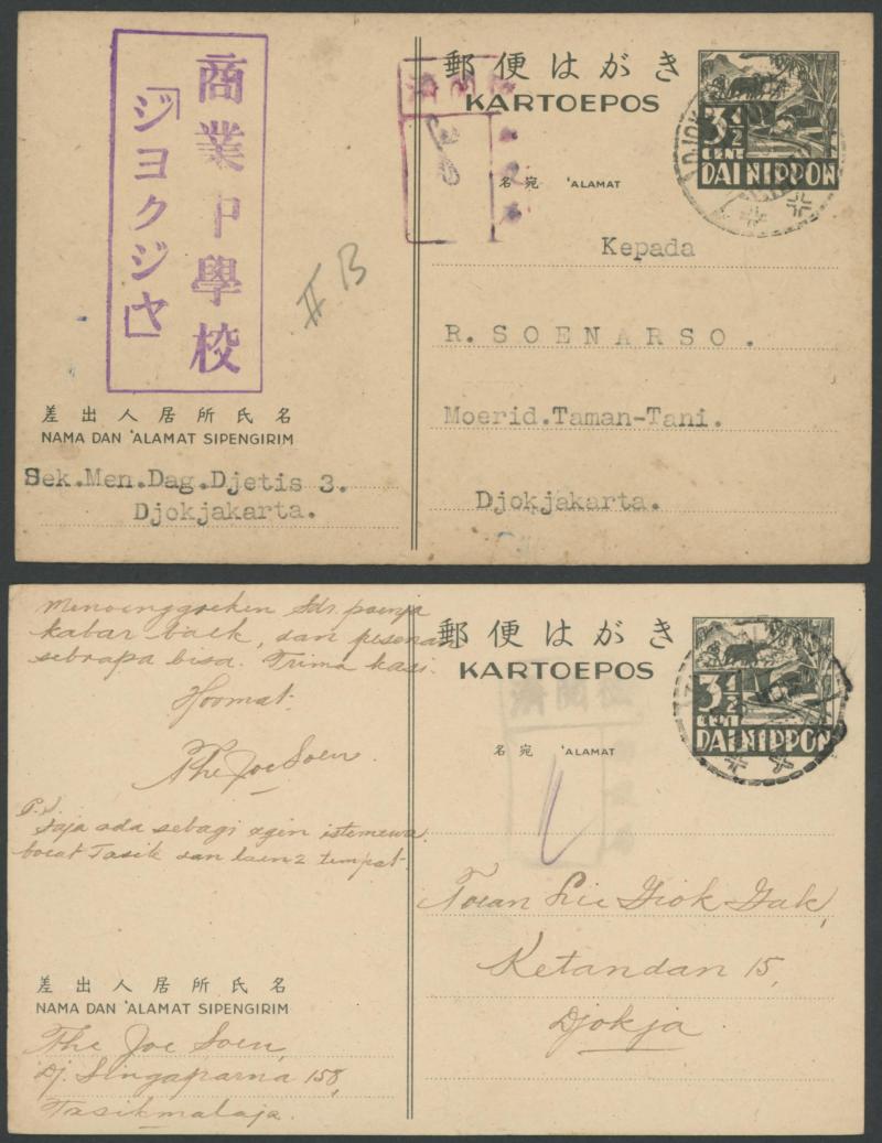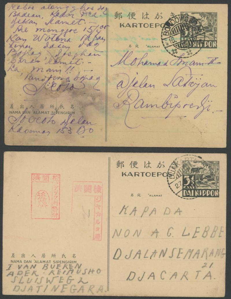 tied by Soerabaja cds, and two correspondence postcards with unoverprinted NEI 3½c Scenes, then a batch of Postal Cards including one unoverprinted NEI 3½c Scenes, 'DAI NIPPON' 3½c Scenes large-format x4 on various stocks and small-format x13, Oxen