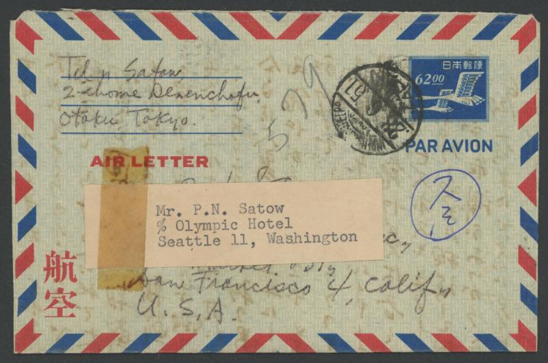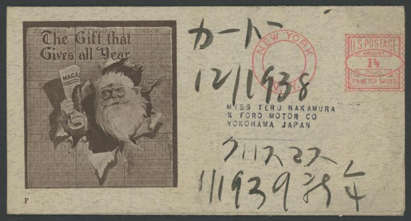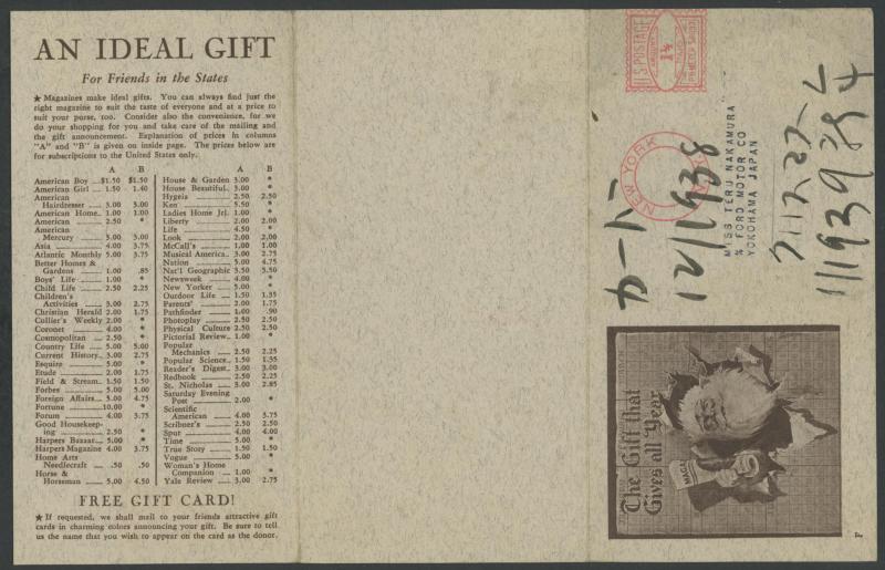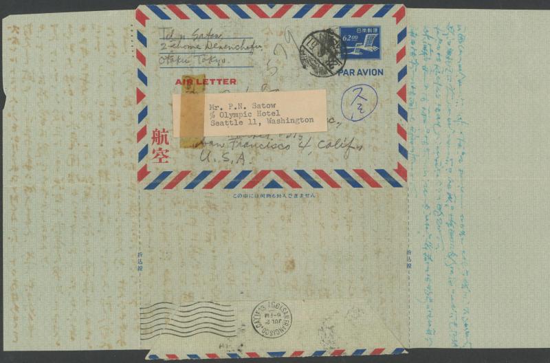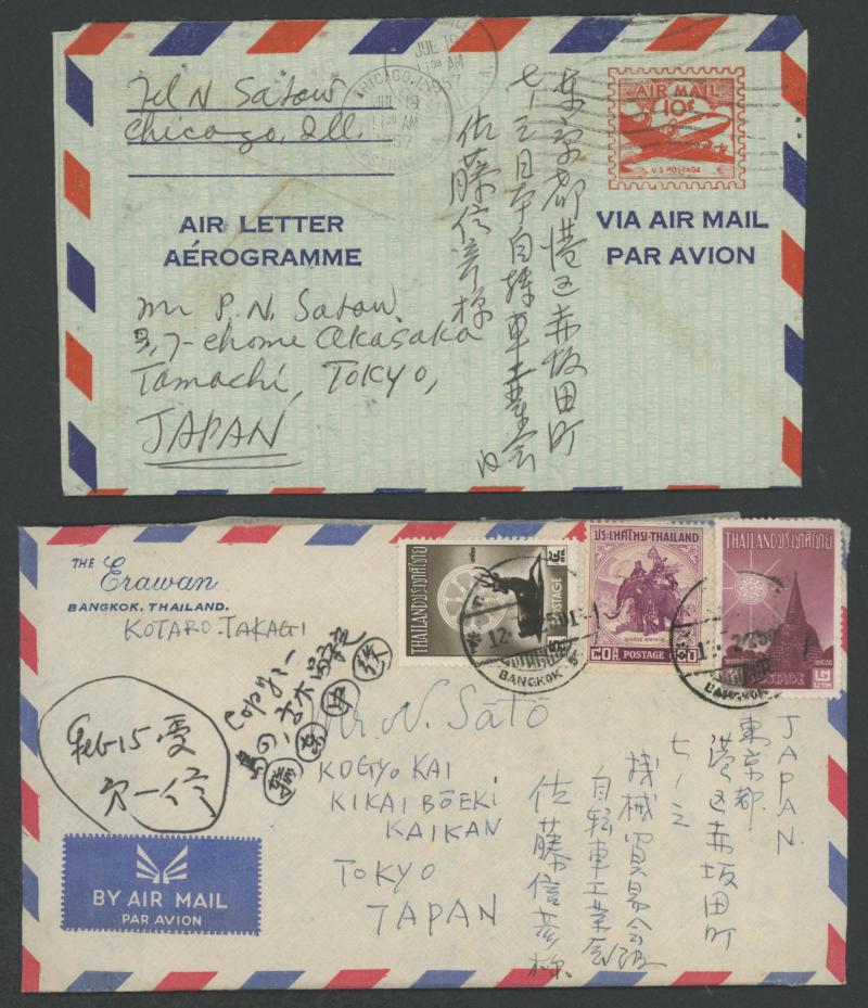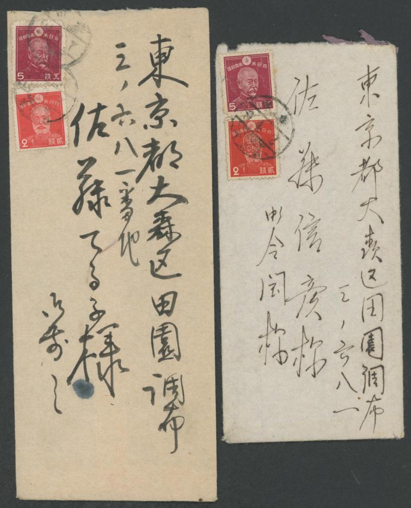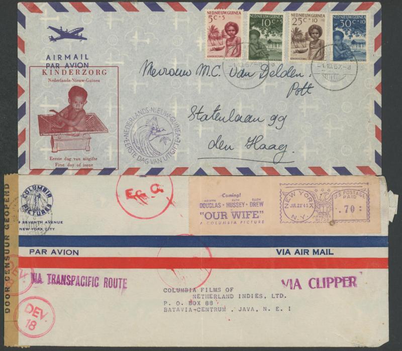 Trans-Pacific Clipper with Columbia Pictures 'Our Wife' movie 70c advertising meter, 1940s Japanese Occupation complete folded parcel wrappers x2 both registered from Bandoeng to Semarang with combination frankings one with Occupation 10s Java