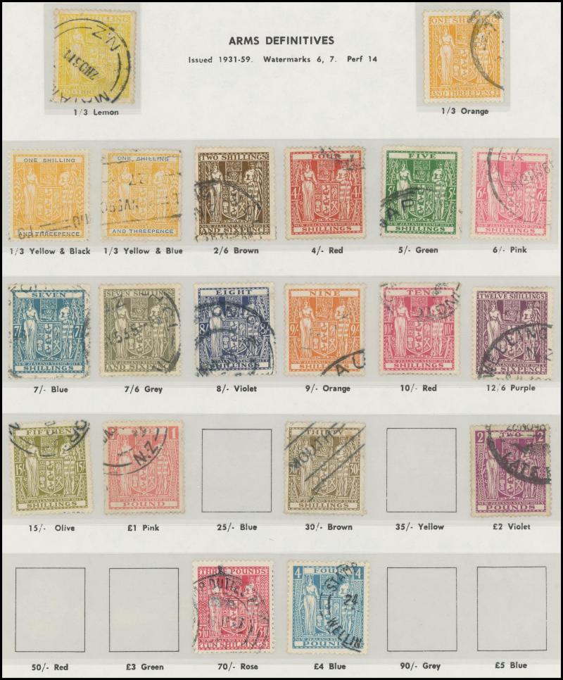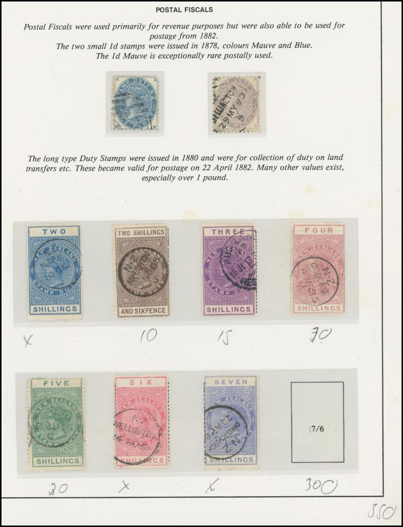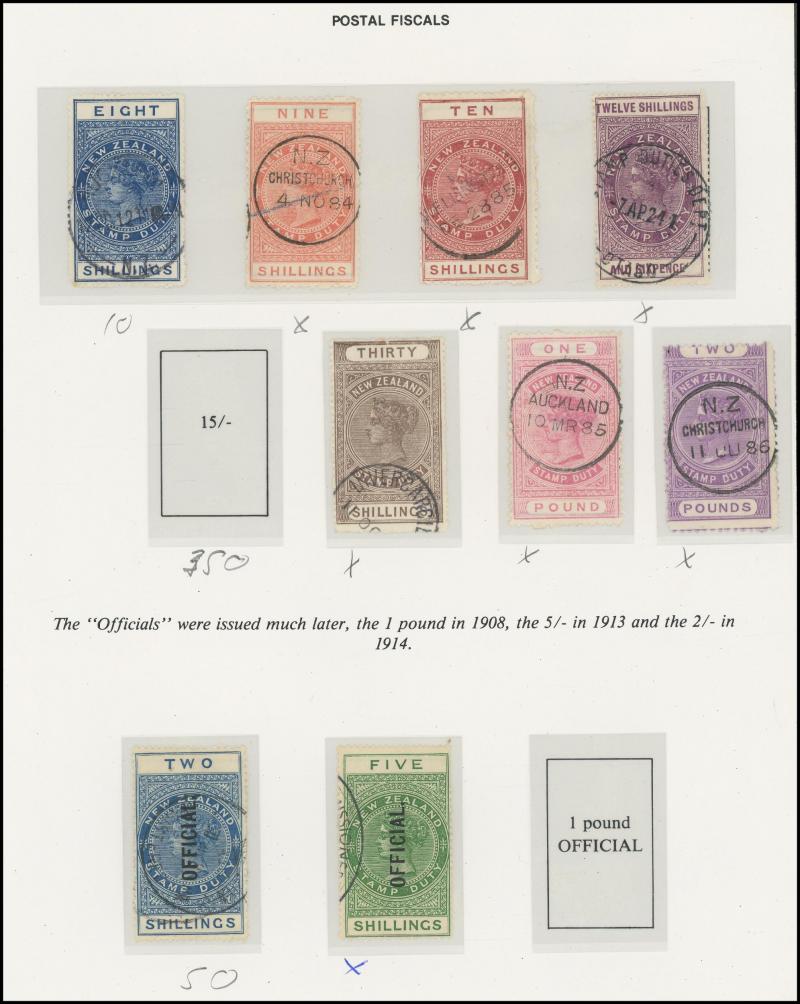 including QV 7/6d (parcels cds) & 15/- (query the cds) plus 12/6d with fiscal cds, Arms postally used including 1/3d lemon 9/- 30/- £2 & £3 plus £3/10/- with fiscal cds, Surcharges set to '35/-' on 35/-, Victoria Land ½d (query the cds), etc, a very