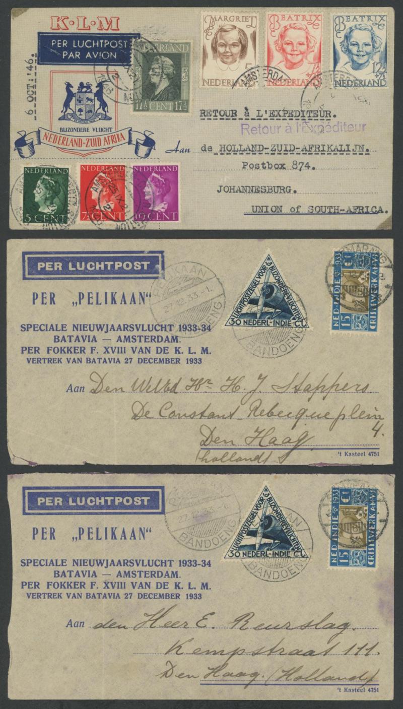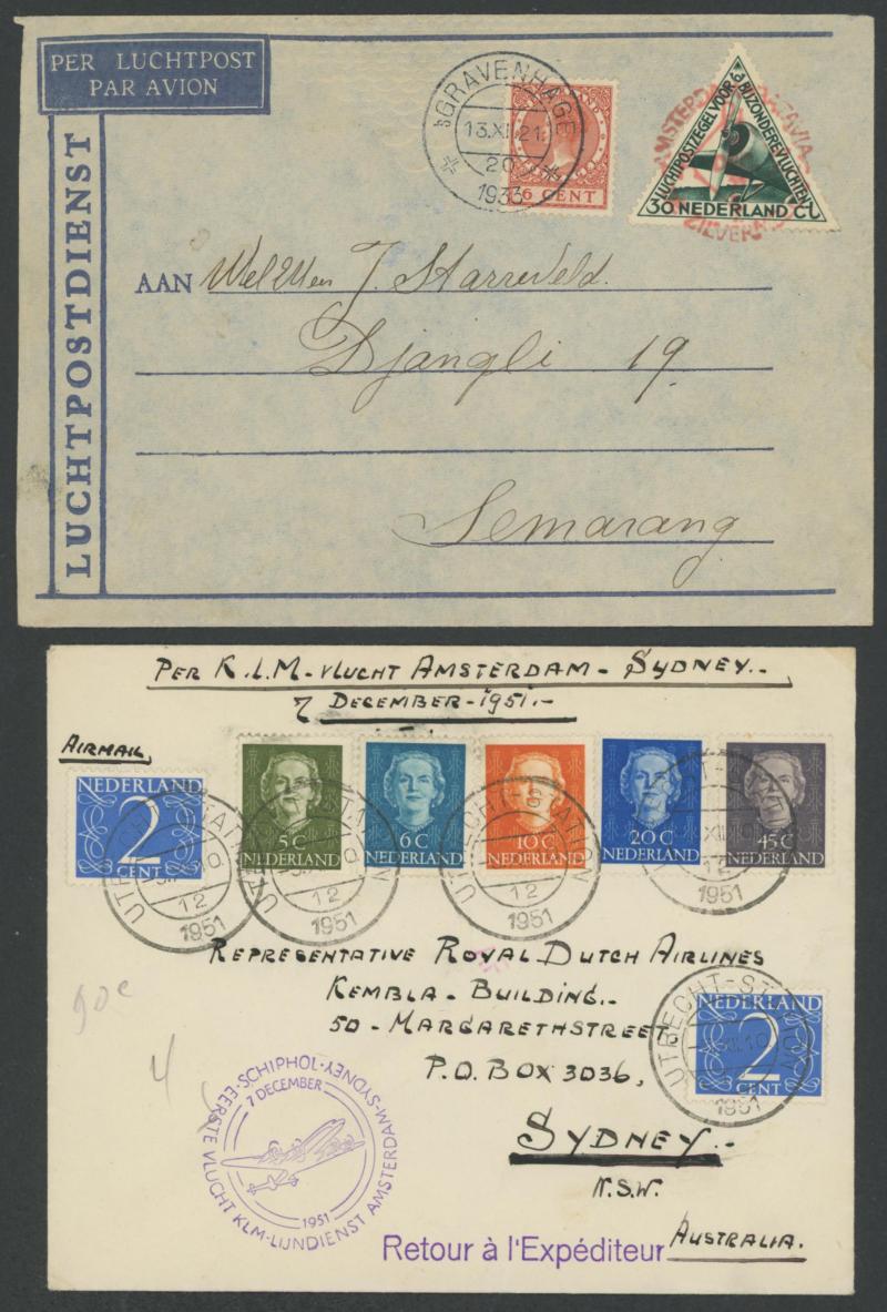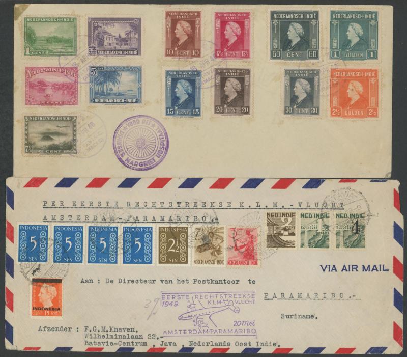 Anniversary & 20c Map and Netherlands Indies 3c Scenes (and another stamp removed), the other with Occupation 10c Temple x2 & Netherlands Indies 4c Dancer x2, also various flight covers, etc, condition generally fine to very fine except as noted.