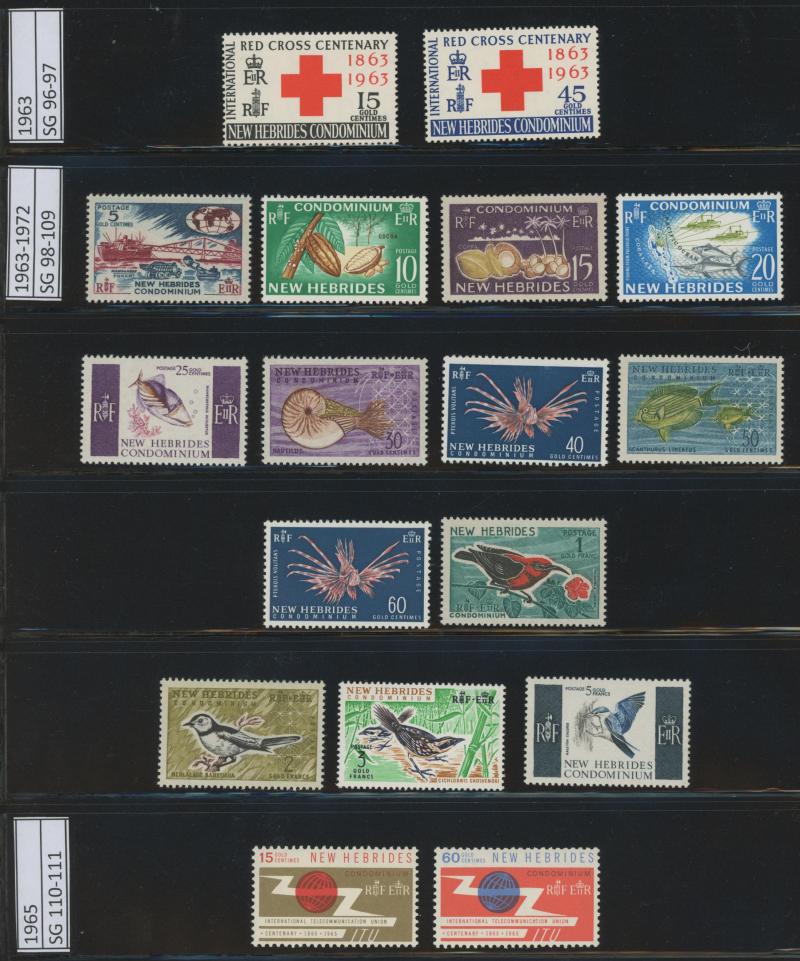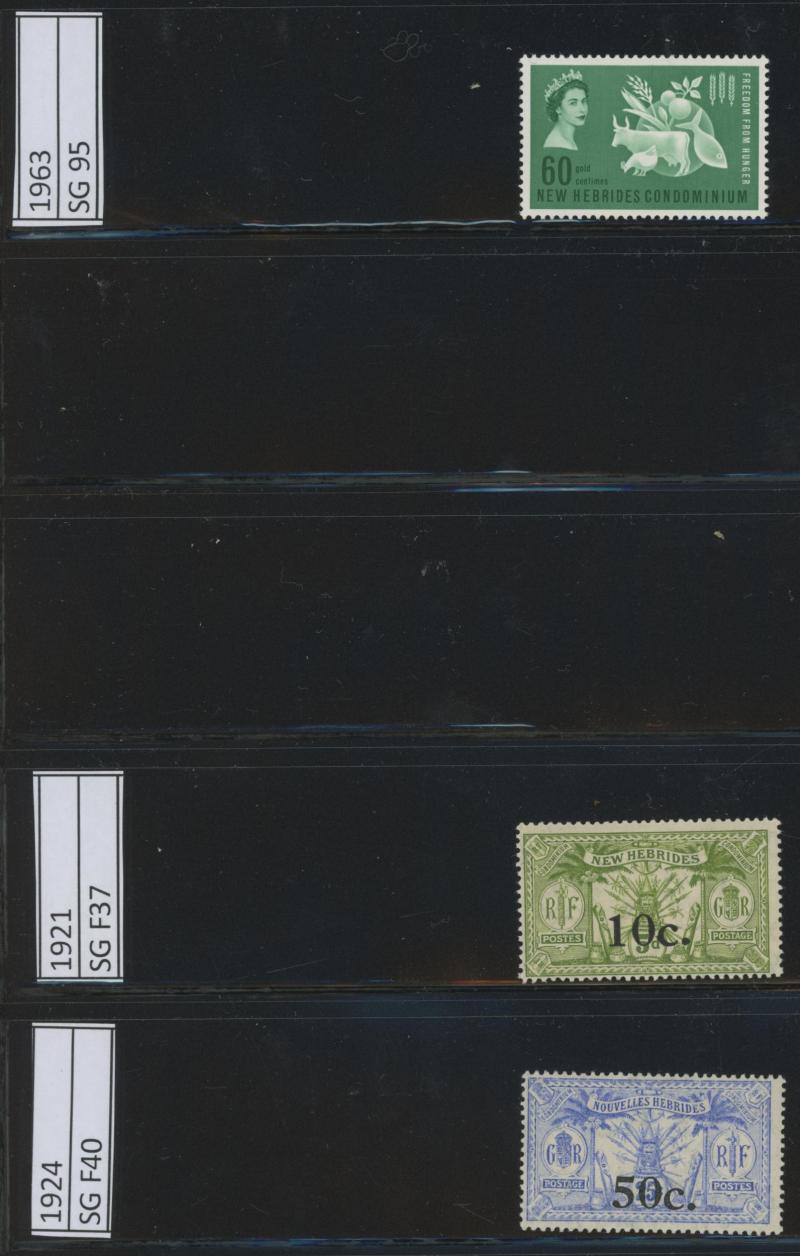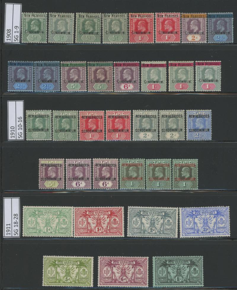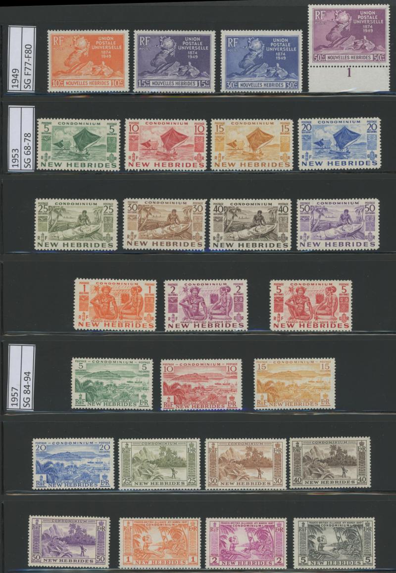 KGV 1921 Weapons and Idols set plus overprinted 'SPECIMEN' set and 6d purple used, 1925 Weapons and Idols set with French and British currency plus overprinted 'SPECIMEN' set, French issues 1925 Weapons and Idols set used, KGVI 1938 Lopevi Island and
