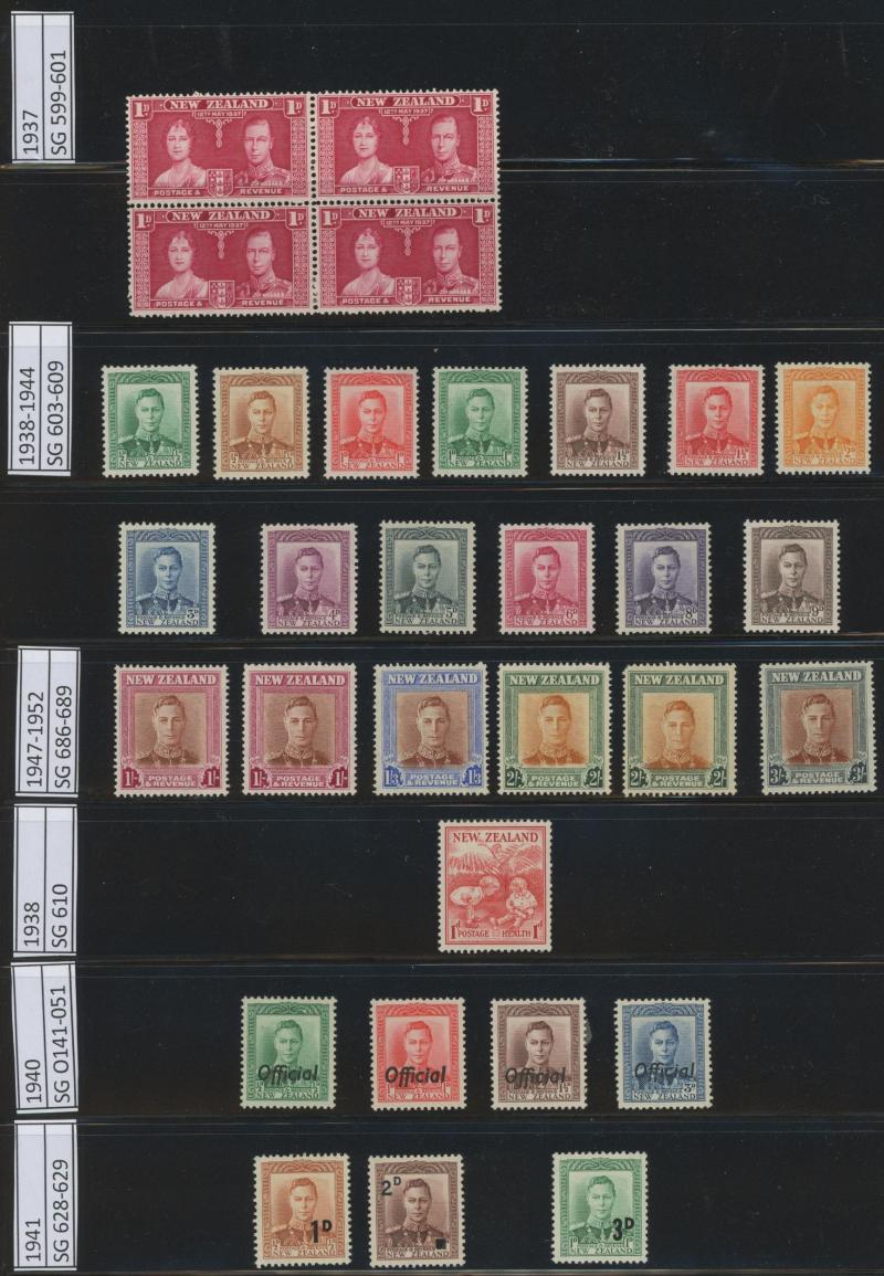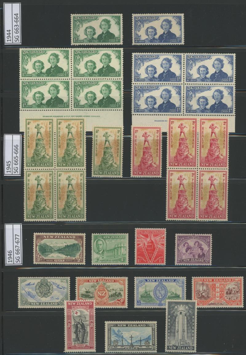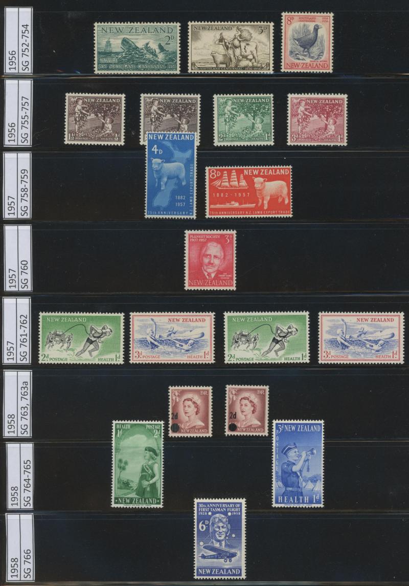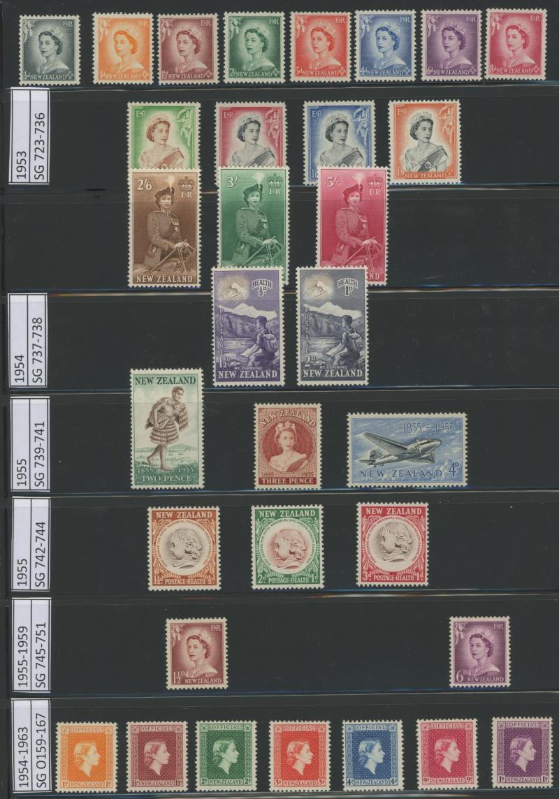 sets, Christchurch Auckland (6d rounded corner) & Dunedin Exhibition sets all with Exhibition cds, Healths complete plus unmounted M/Ss, etc, QEII '2d' on Stars 1½d, Postal Fiscals 7/6d & 12/6d and fiscally used £3/10/-, Officials including