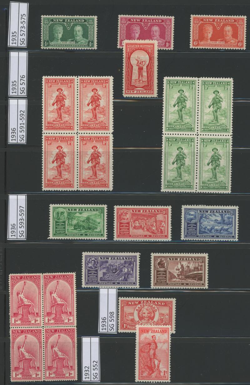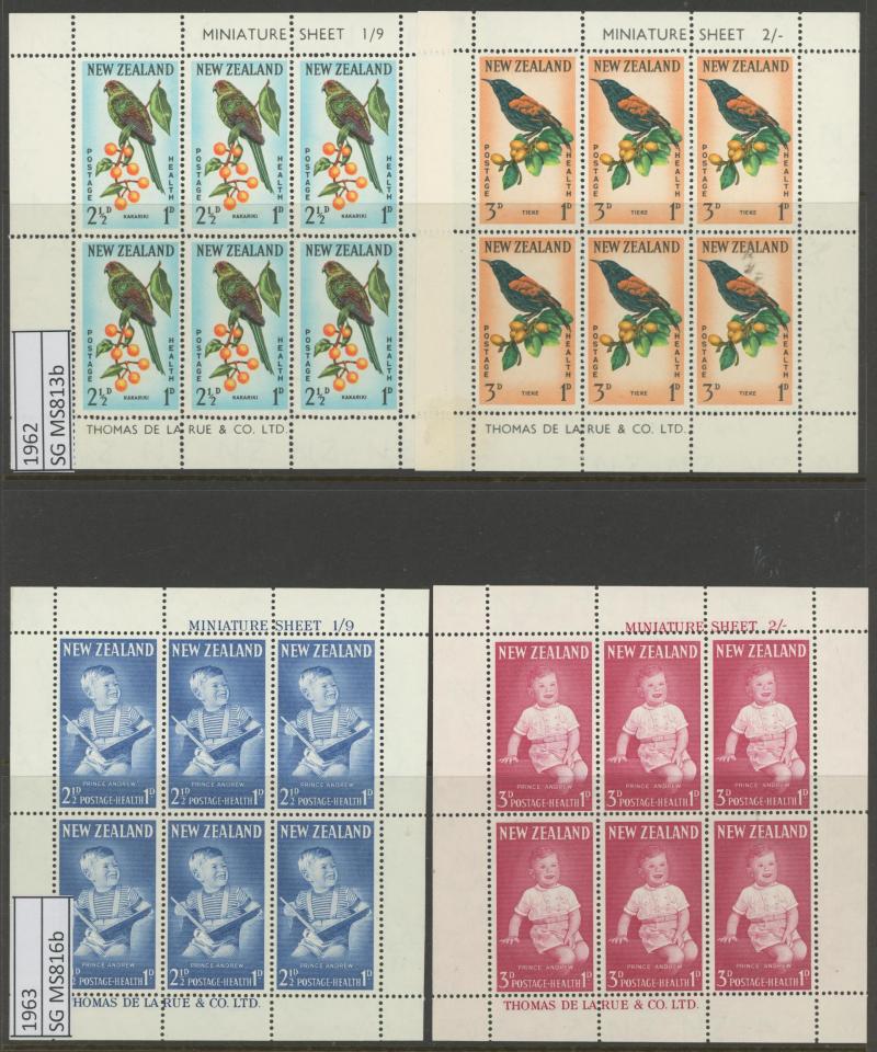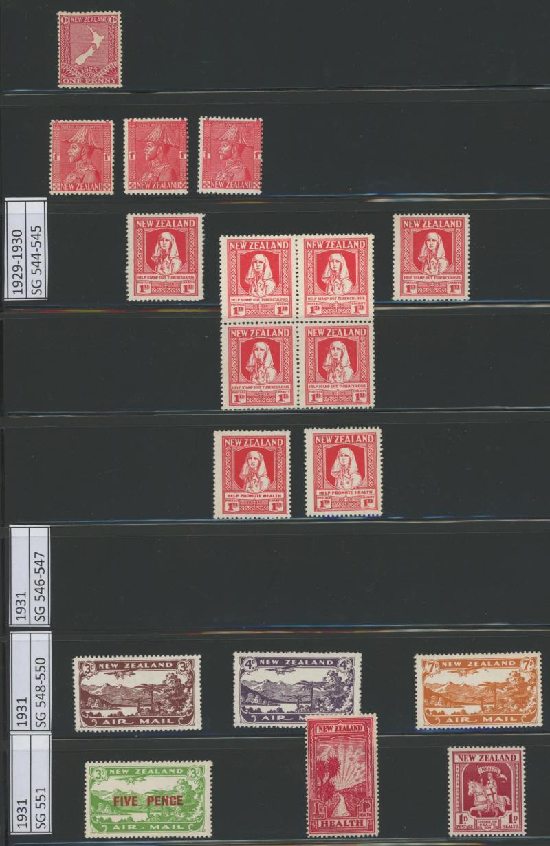 24 (6x4) from the upper-right corner of the sheet, 1898 Pictorials No Wmk ½d to 8d */unused including both 2½d inscriptions plus NZ Star Wmk 2/- used, 1930s Health issues * including Nurse duo, Hygeia & Crusader, also a small collection on leaves