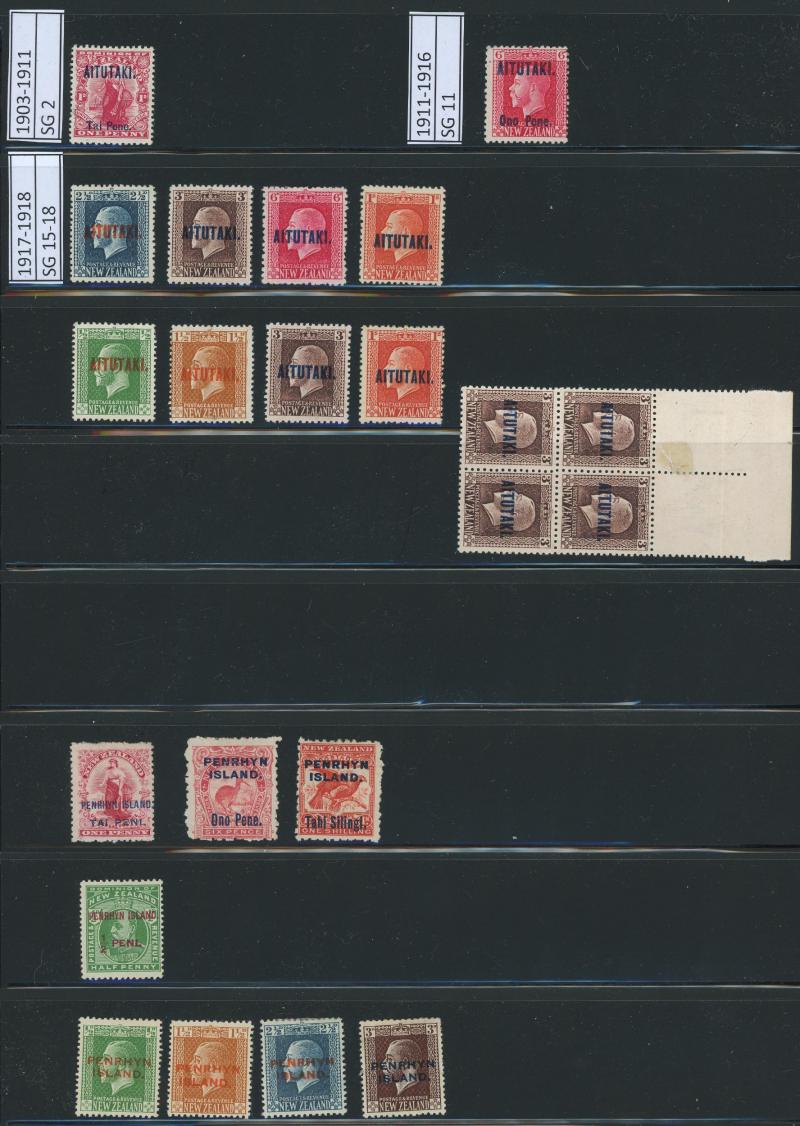 Mail set, 1935-36 Pictorial set, 1935-37 Officials set to 2/-, 1947-53 KGVI Heads set **, 1953-59 QEII Heads set **, 1960-66 Pictorials set, Postal Fiscals 1940 1/3d and 1953 3/6d, Aitutaki 6d carmine overprinted 'AITUTAKI/One Pene.', etc, generally