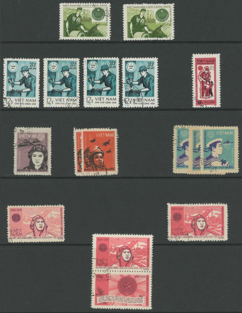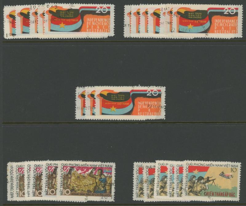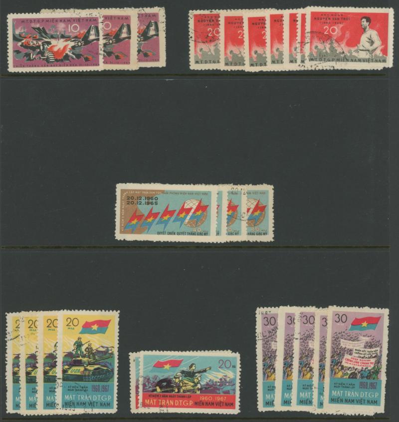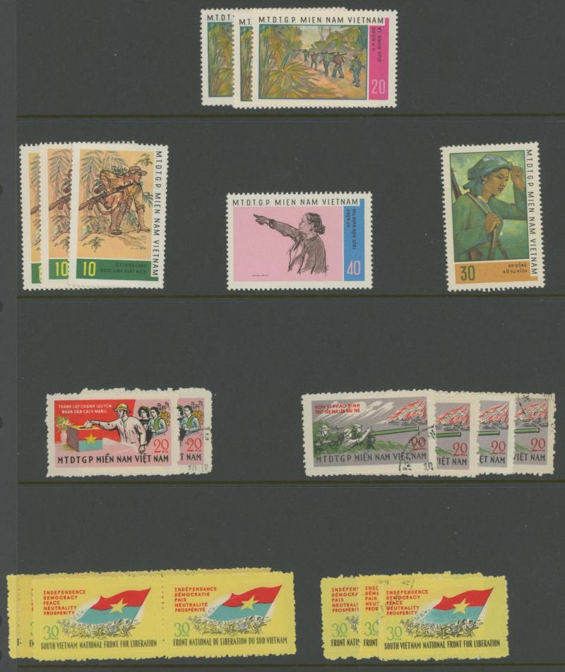 Scott 1L27-31, Elephants 1L32-33 set x2 and Cathedral 1L36, Cat US$300; 1948 Ho Chin Minh 2d & 3d SG N2-3 CTO, Cat £200; and National Liberation Front (Viet Cong) 1963-76 issues apparently complete mostly CTO with some duplication plus 1964