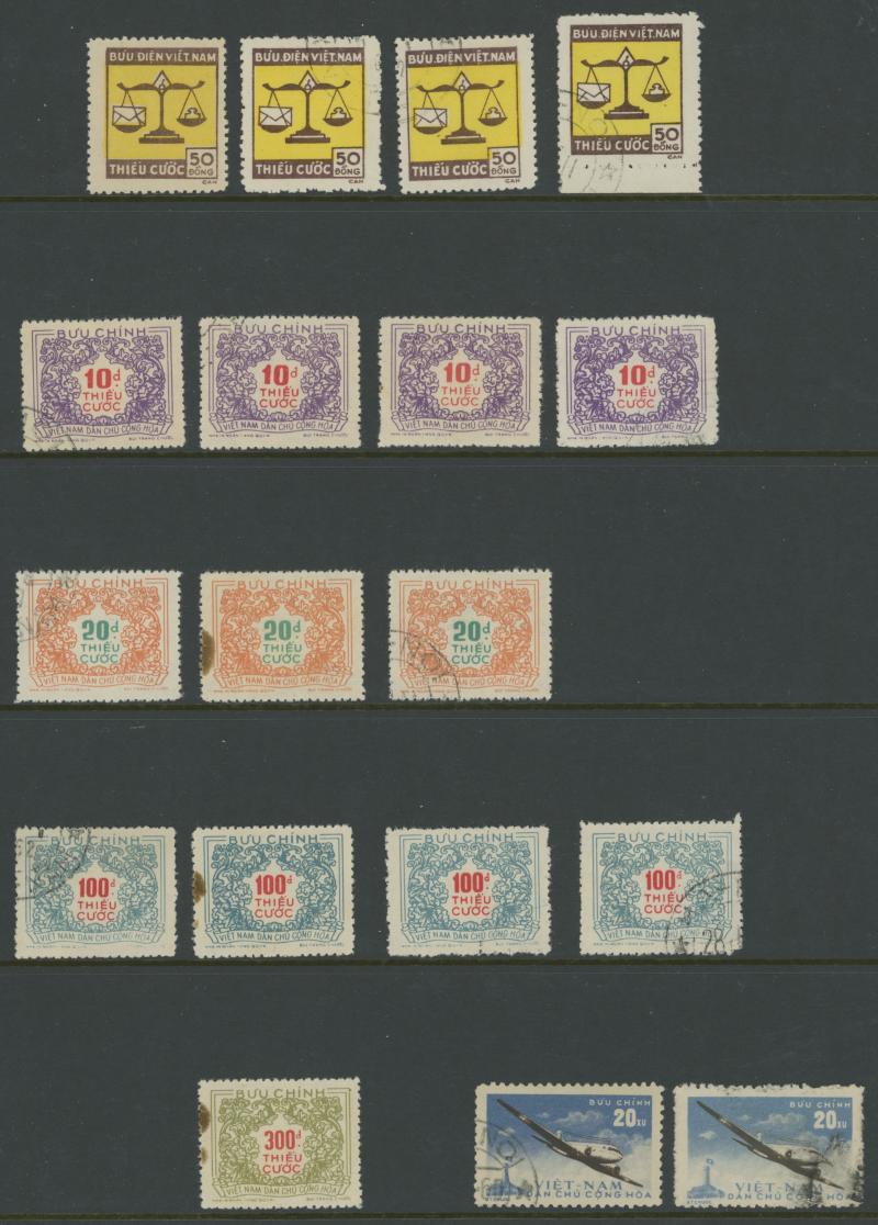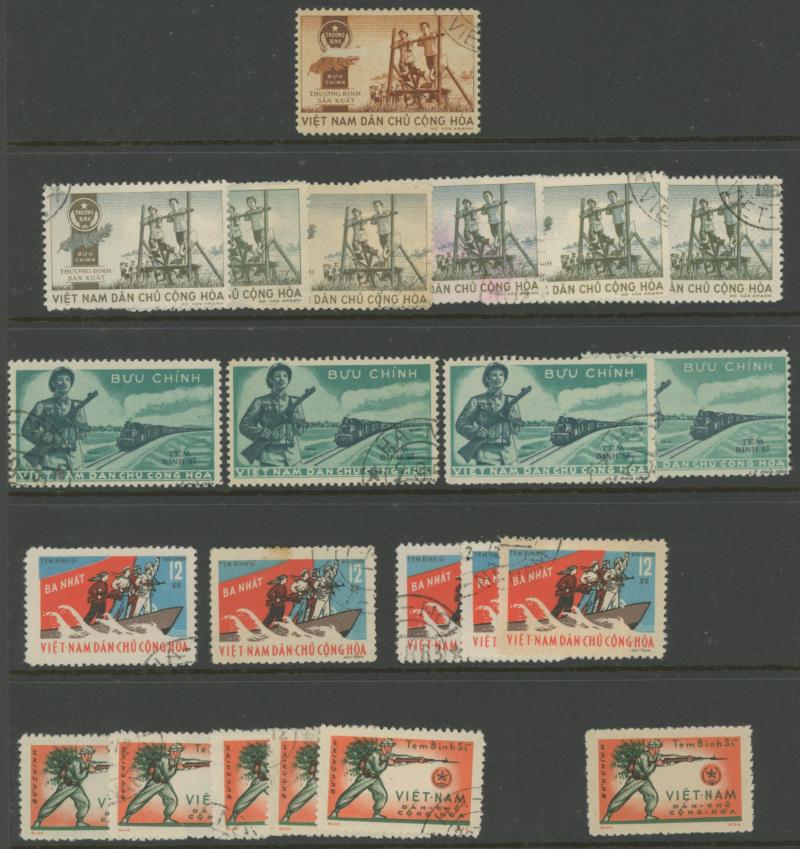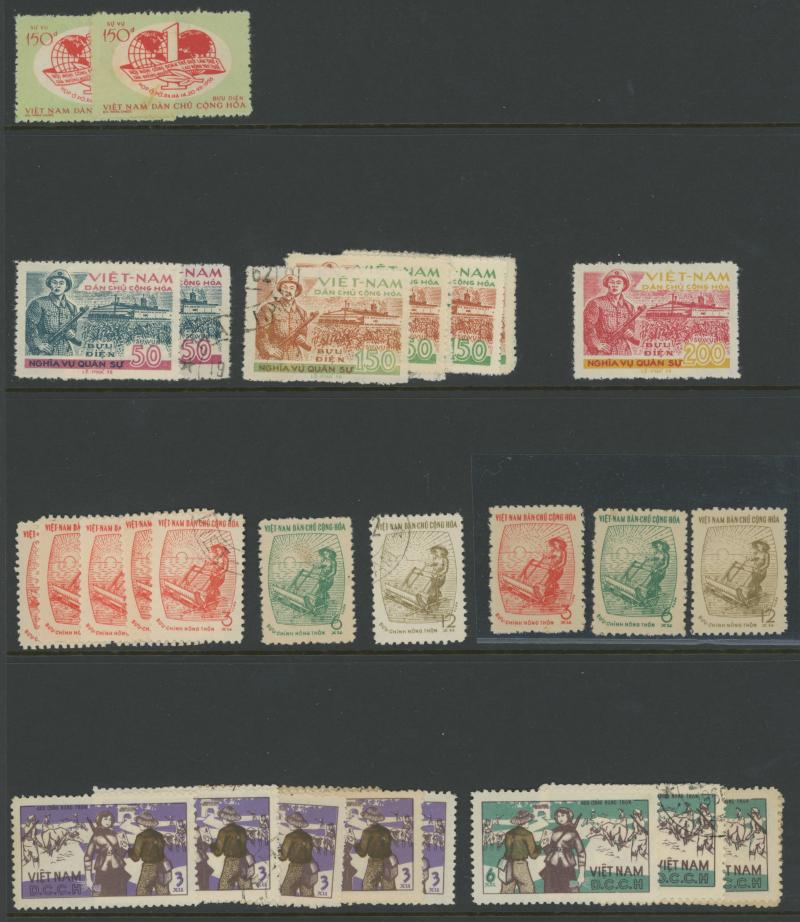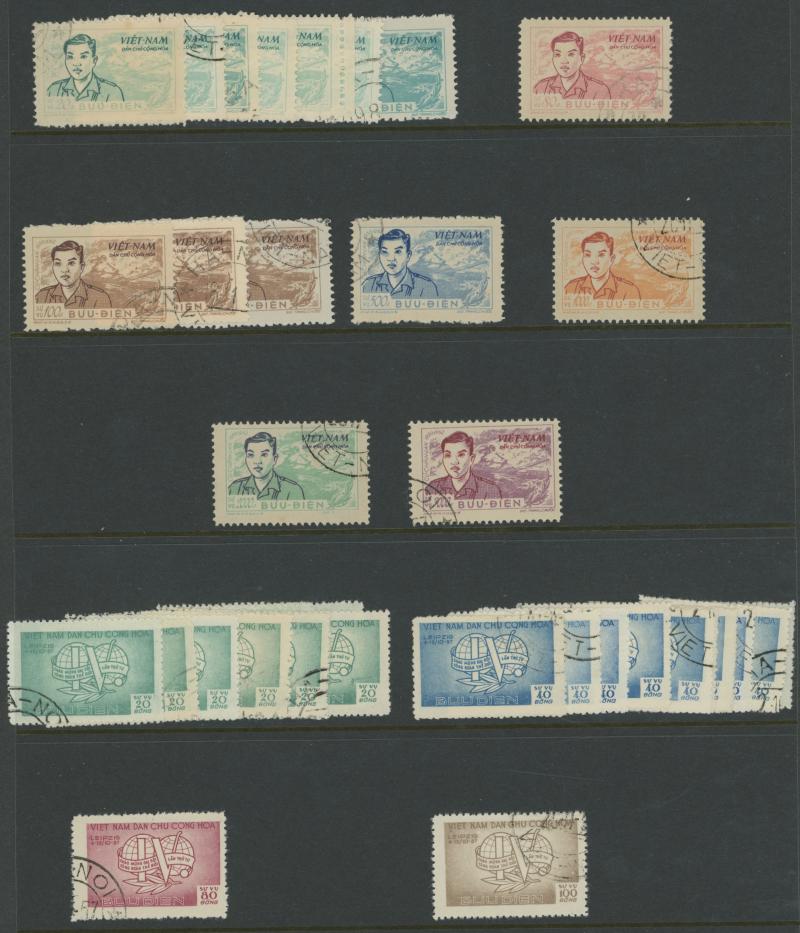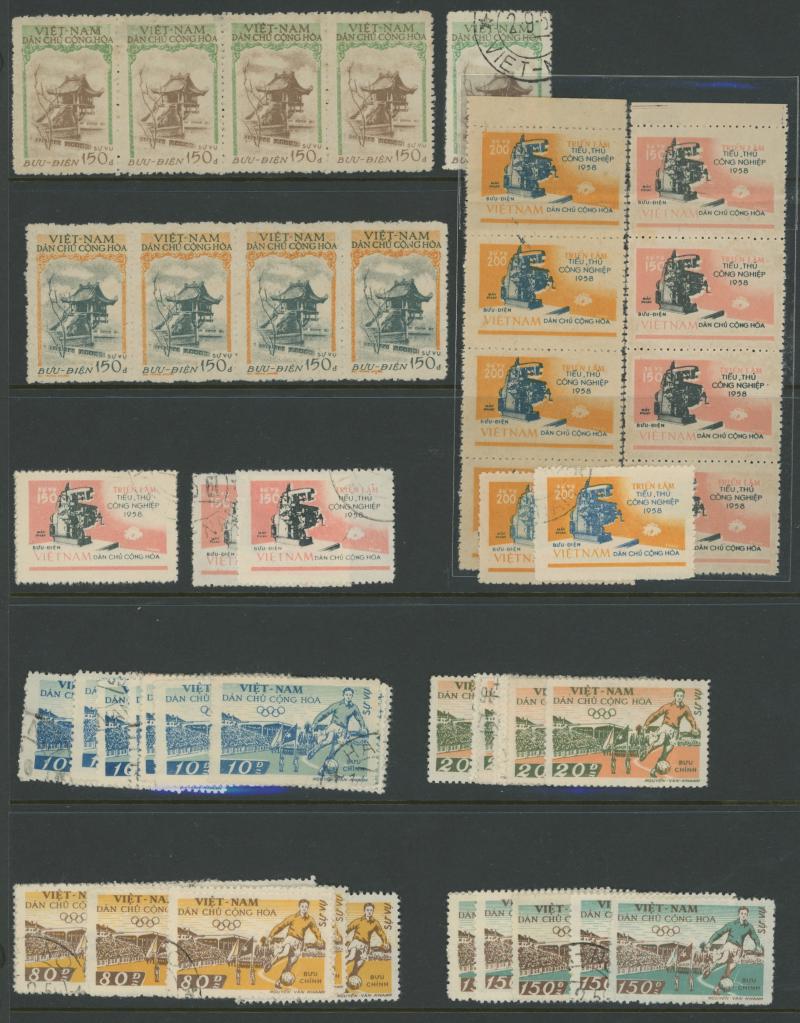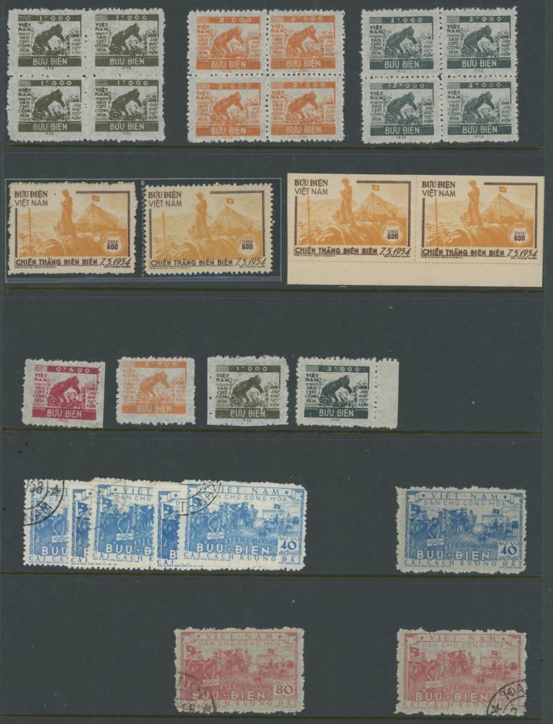 1951-55 Ho Chi Minh & Map Imperf 100d green CTO and Perf 11 set, 1953 Rice Harvesting set plus 1000k to 5000k blocks of 4, 1954 Dien Bien Phu imperf pair plus both perfs, 1956 '0k,100/THOC' x2 sets (one CTO), 1956 Railway set, 1956-57 Cu Chinh Lan