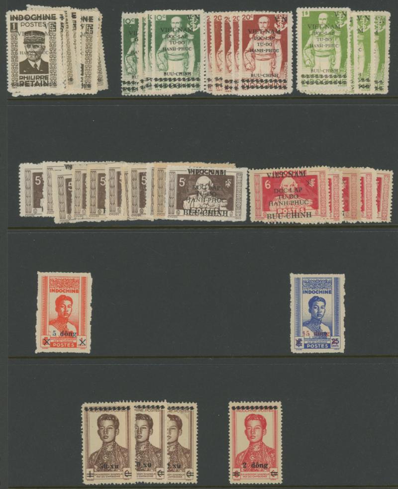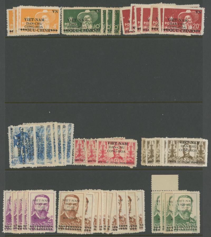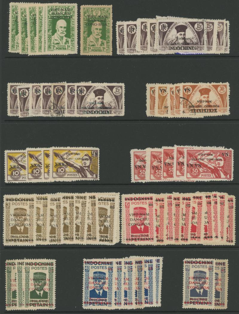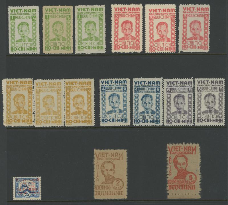 NORTH VIETNAM: 1946-58 Communist Issues mostly unused with no gum as issued including 1946 Four-Line Overprint on Indo-China 25c,