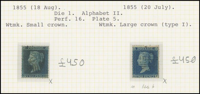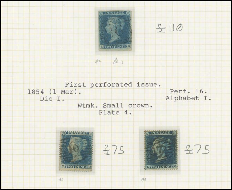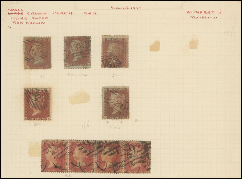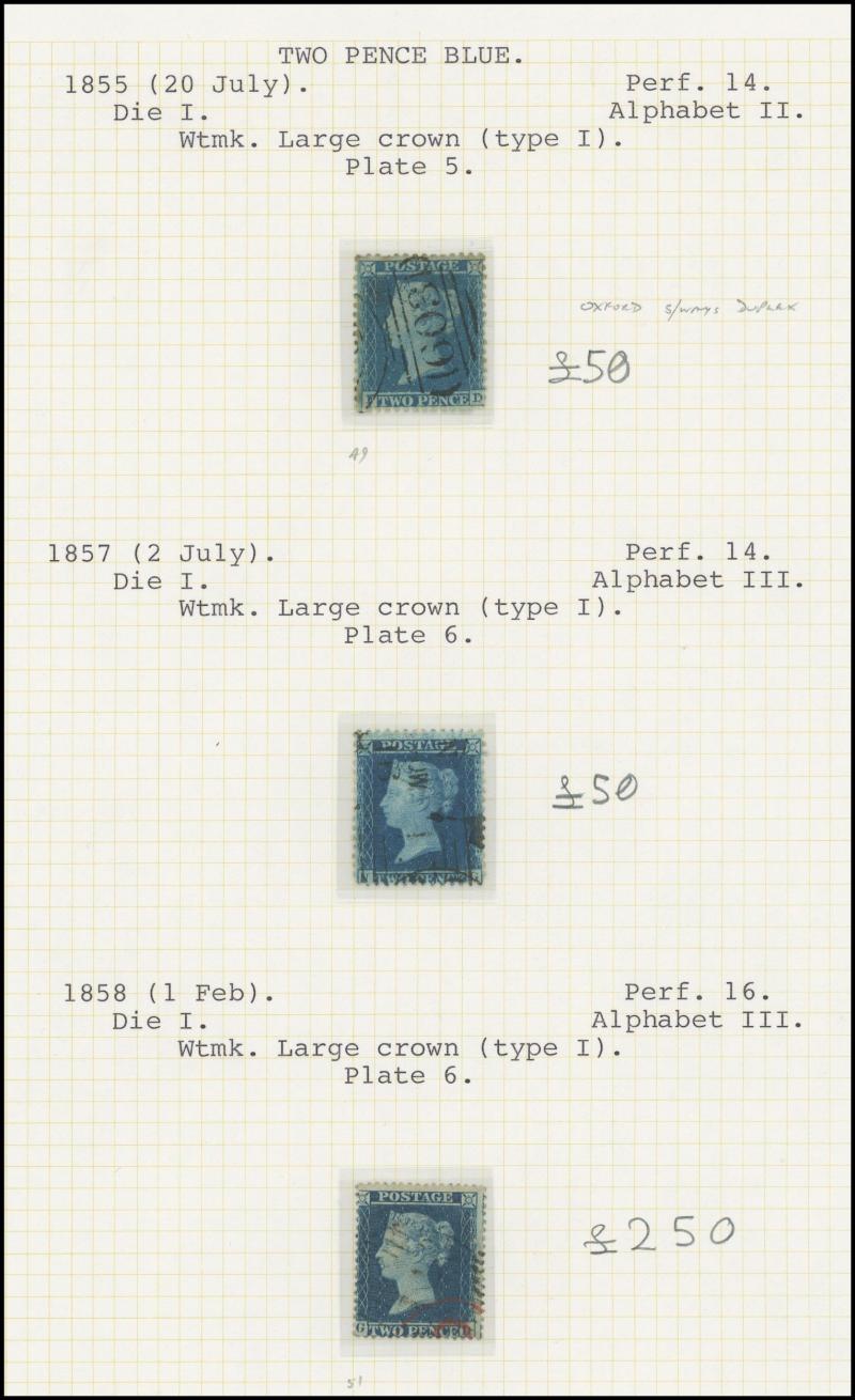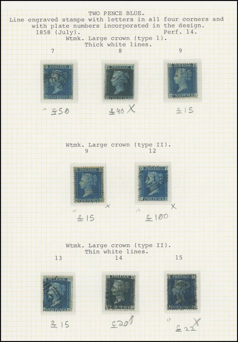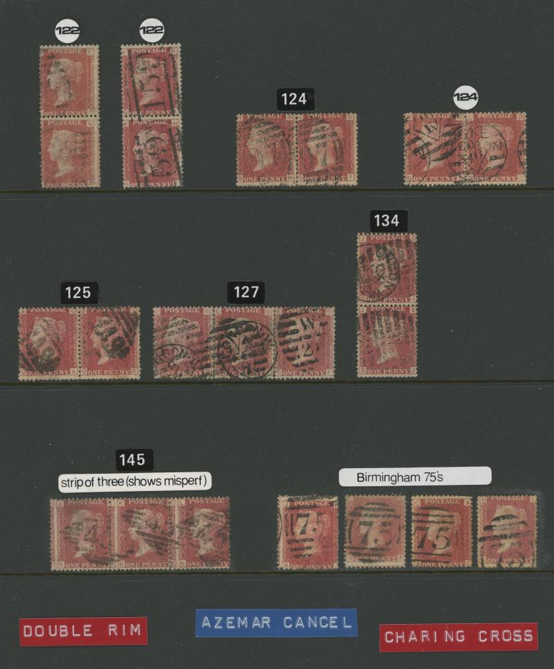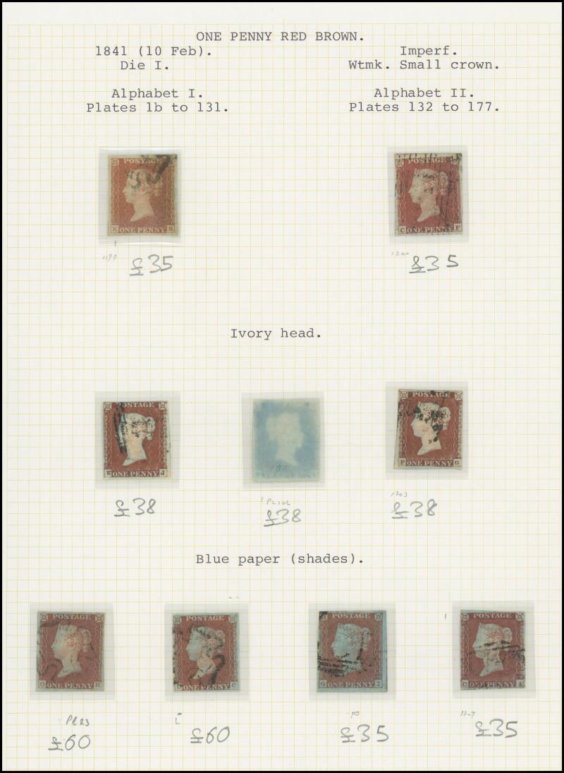 Tuppence Blues (no white lines) used x50 including four pairs, 1841 Penny Reds from Black Plates x15 (Plate 1 x2 & Plate 2 x6) with a few matching letter Black & Red duos and Tuppence Blues (White Lines) imperfs x17 including strips of 3 & 4 and two