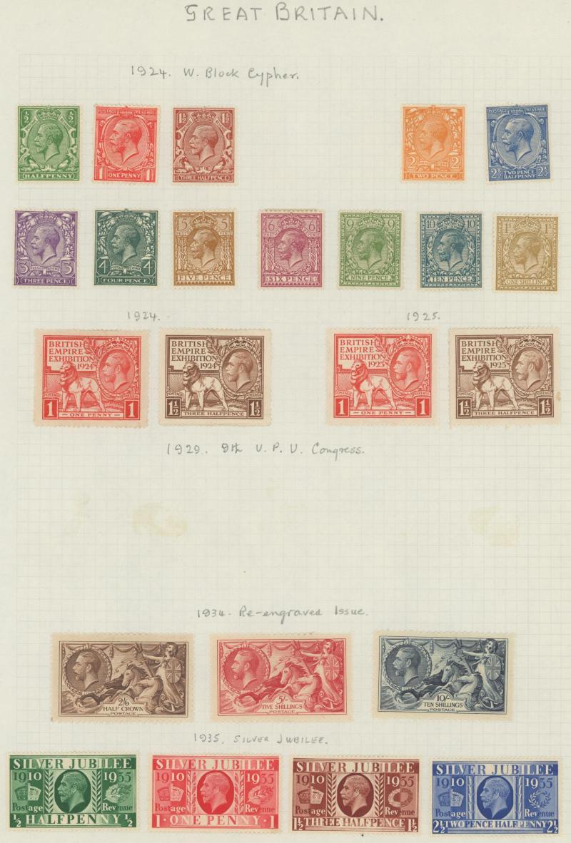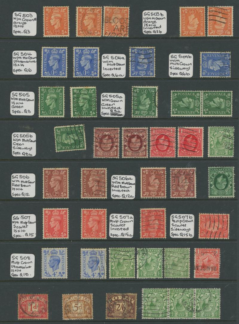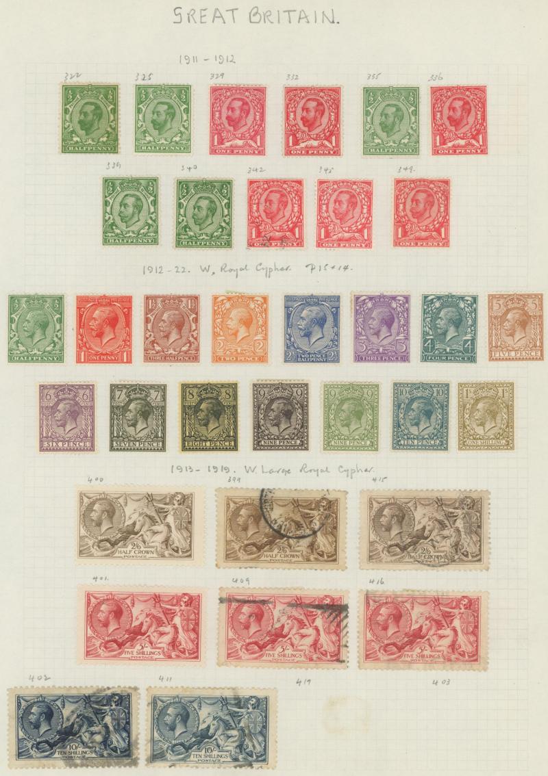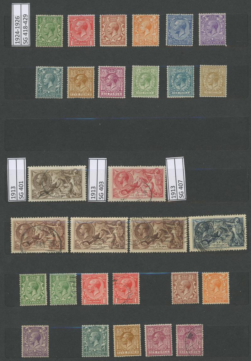 KGV Seahorses including Bradbury Wilkinson 10/- grey-blue * & 1934 Re-Engraved set *, then increasingly mint from KGV issues onwards through KGVI & QEII to the early 1980s, plenty of postmark interest especially amongst the earlies with lots of