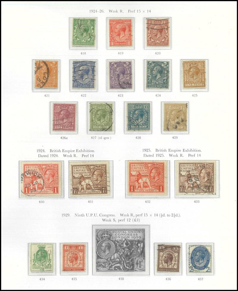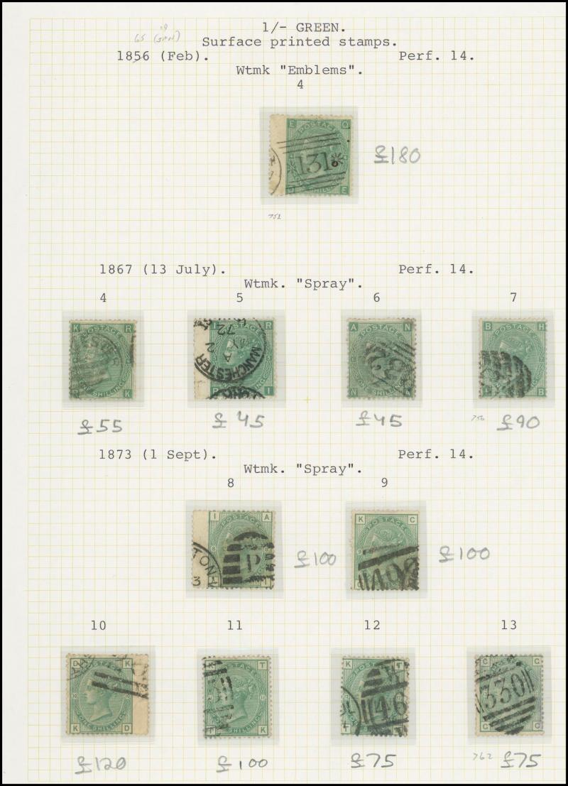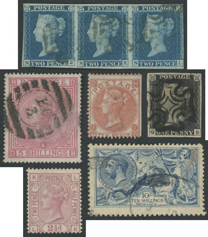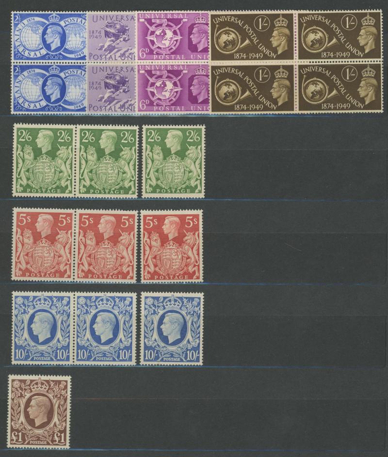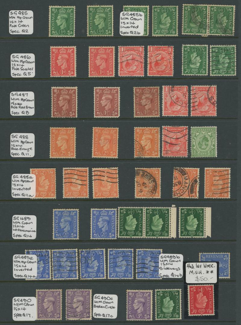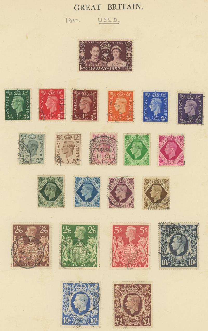 the Surface-Printed issues to 2/- except the 2/- brown with many very fine, 1867-83 5/- 10/- & £1 all presentable, KEVII to 10/-, Seahorses Bradbury Wilkinson 10/-, Wembley & PUC sets (the £1 with bogus steel cancel), QEII issues very fine/CTO with