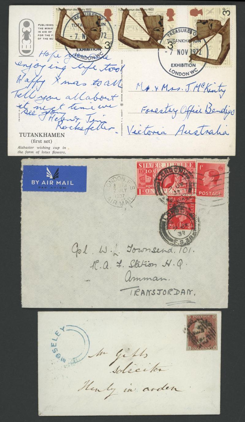 1972 social PPC to Australia with 'TREASURES OF/TUTANKHAMUN/...' cds, etc, most are fine to to very fine. Weighs 10kg.