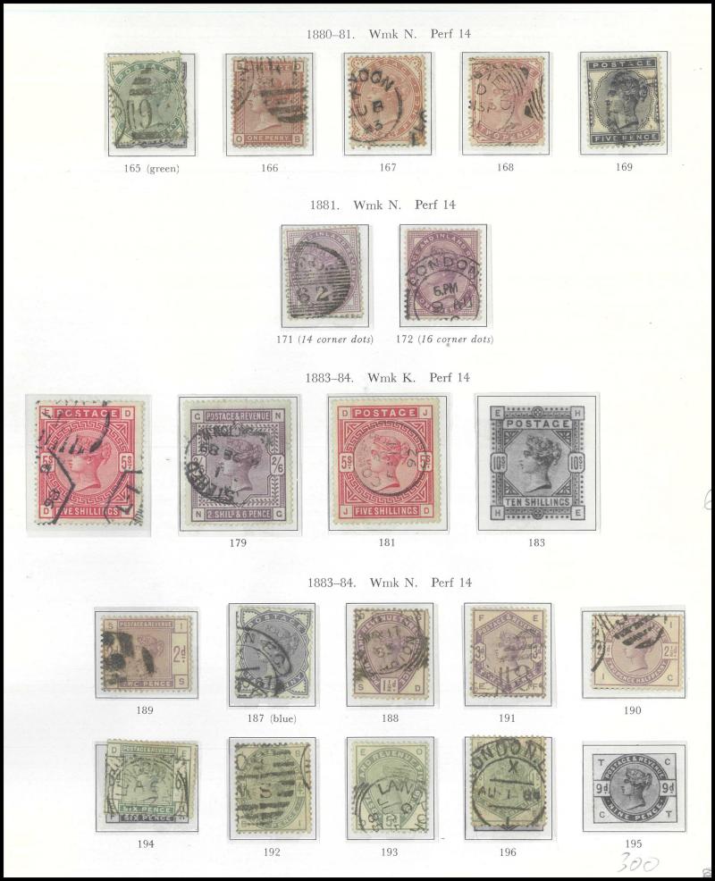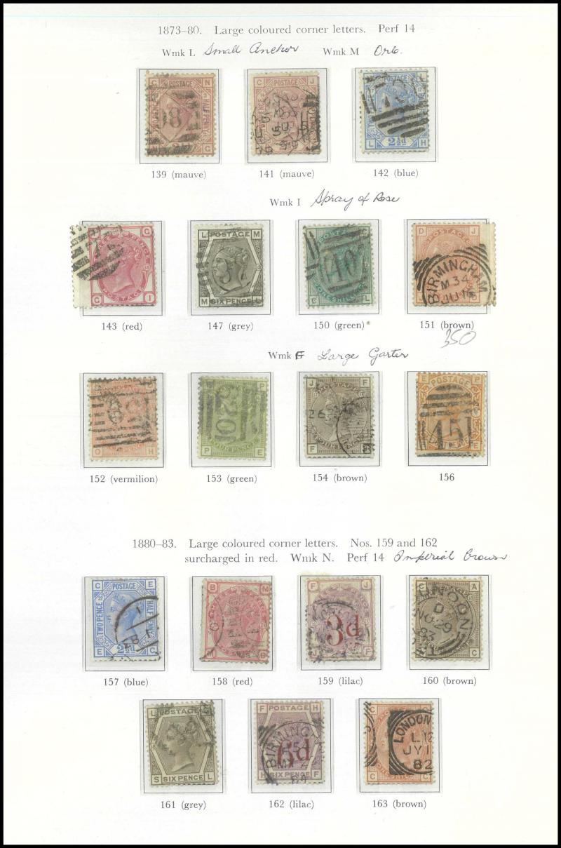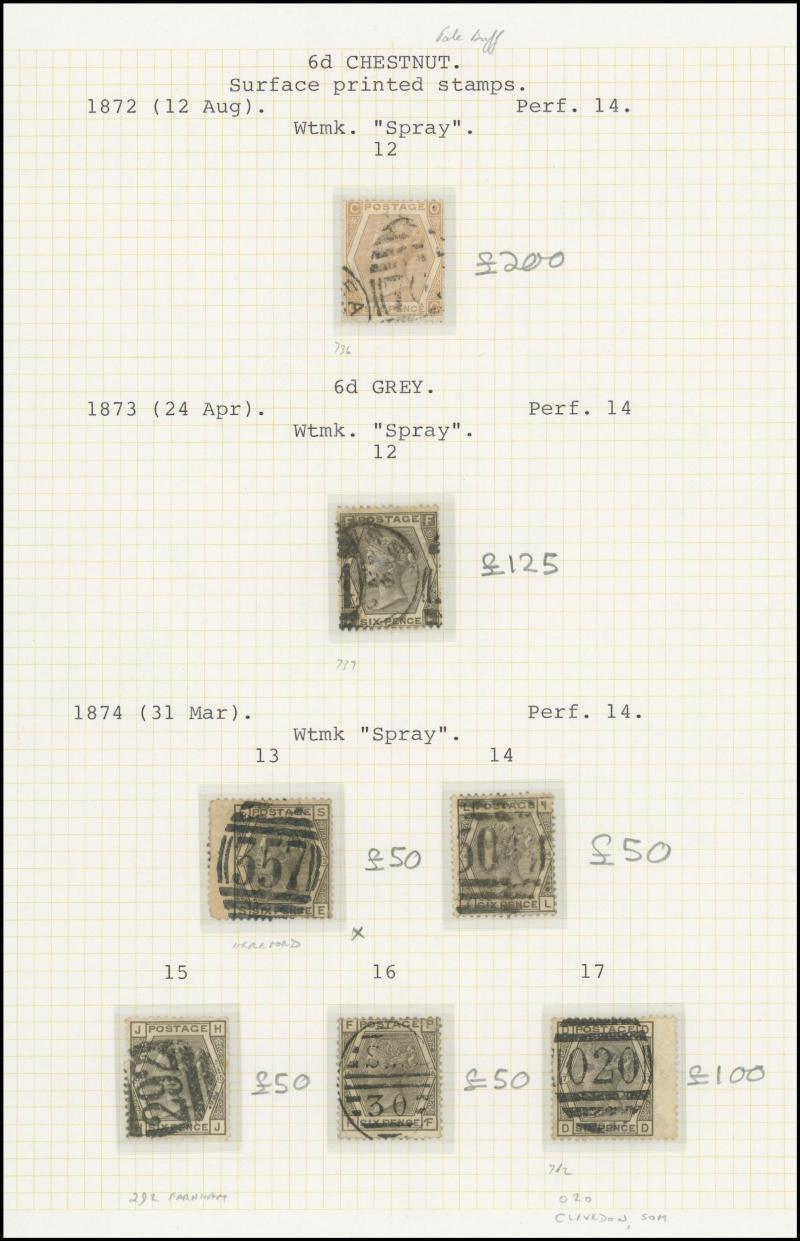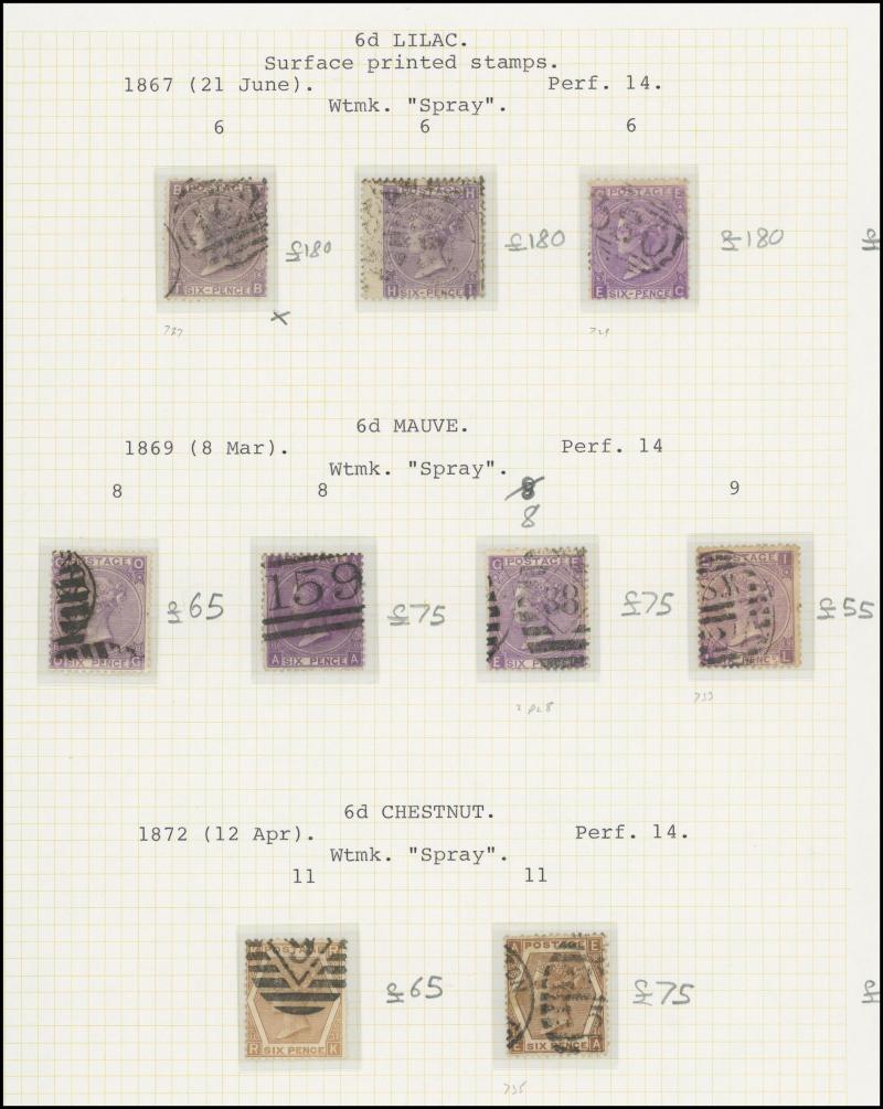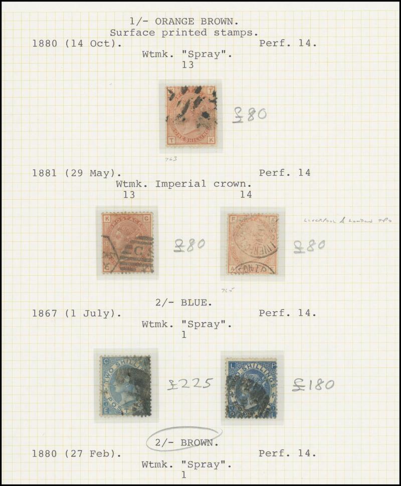 Wmks & Plates, 6d lilac, 6d chestnut both plates, 6d grey, 8d orange, 9d bistre, 9d straw Spray Wmk, 1/- green all Plates except 14, 1/- brown both Wmks & Plates, 2/- deep blue and 2/- pale blue, 2/- brown, 1884 2/6d to 10/- and 1891 £1 green, 1884