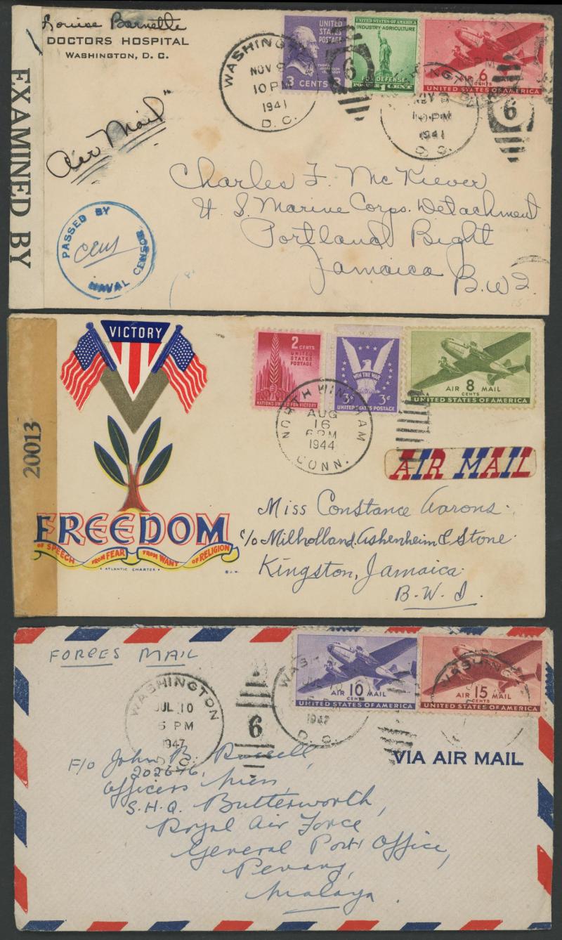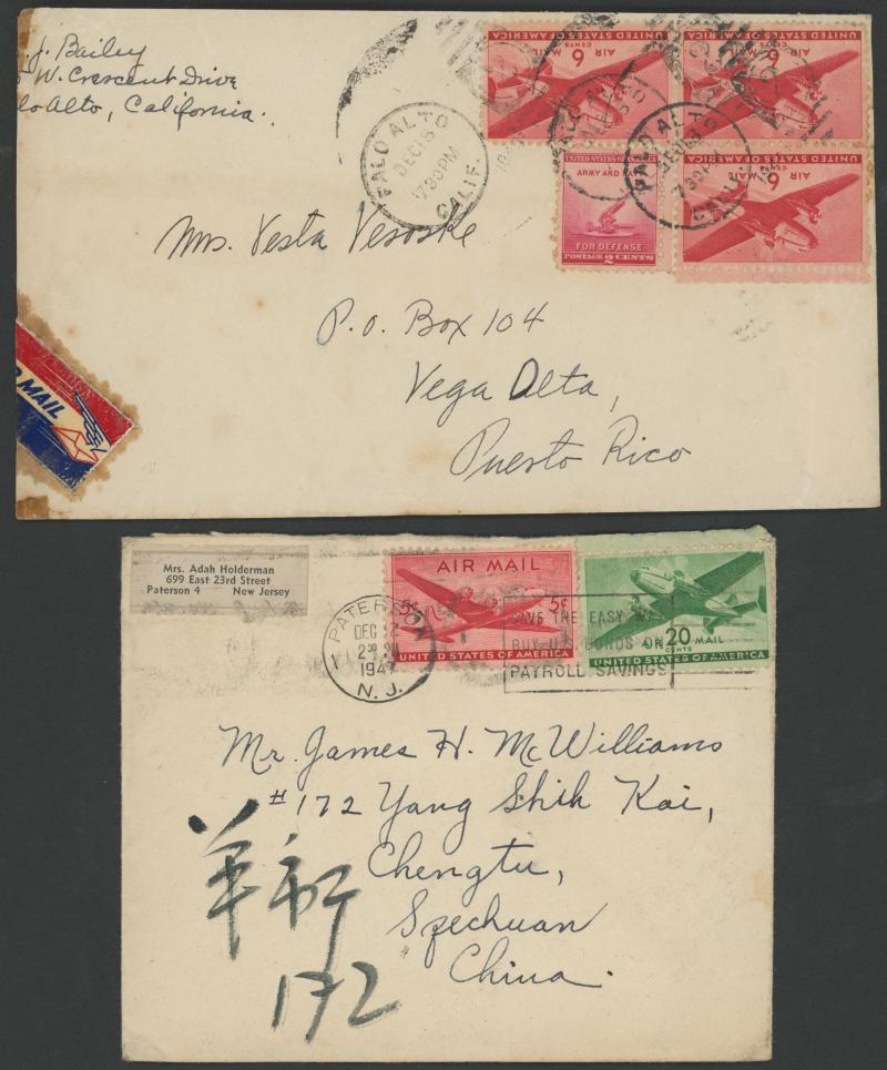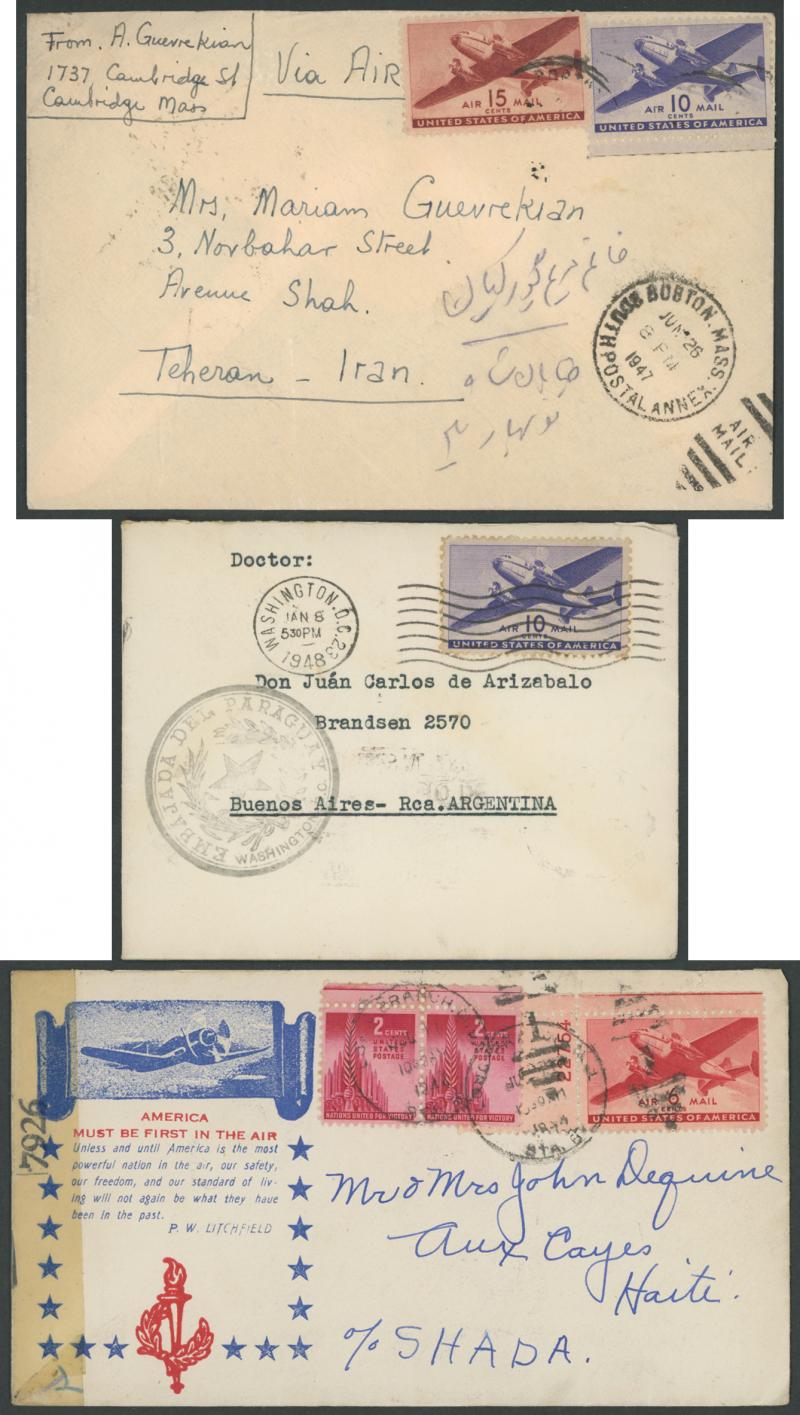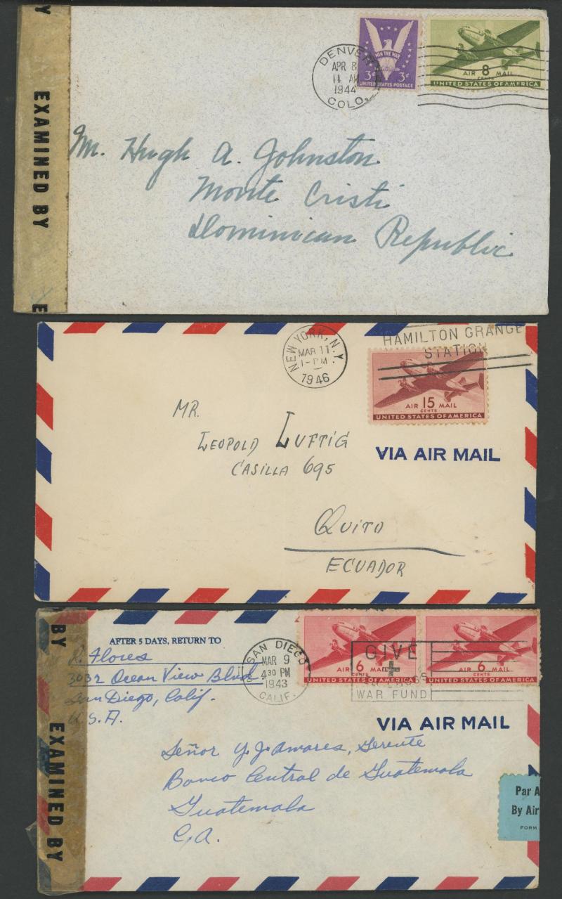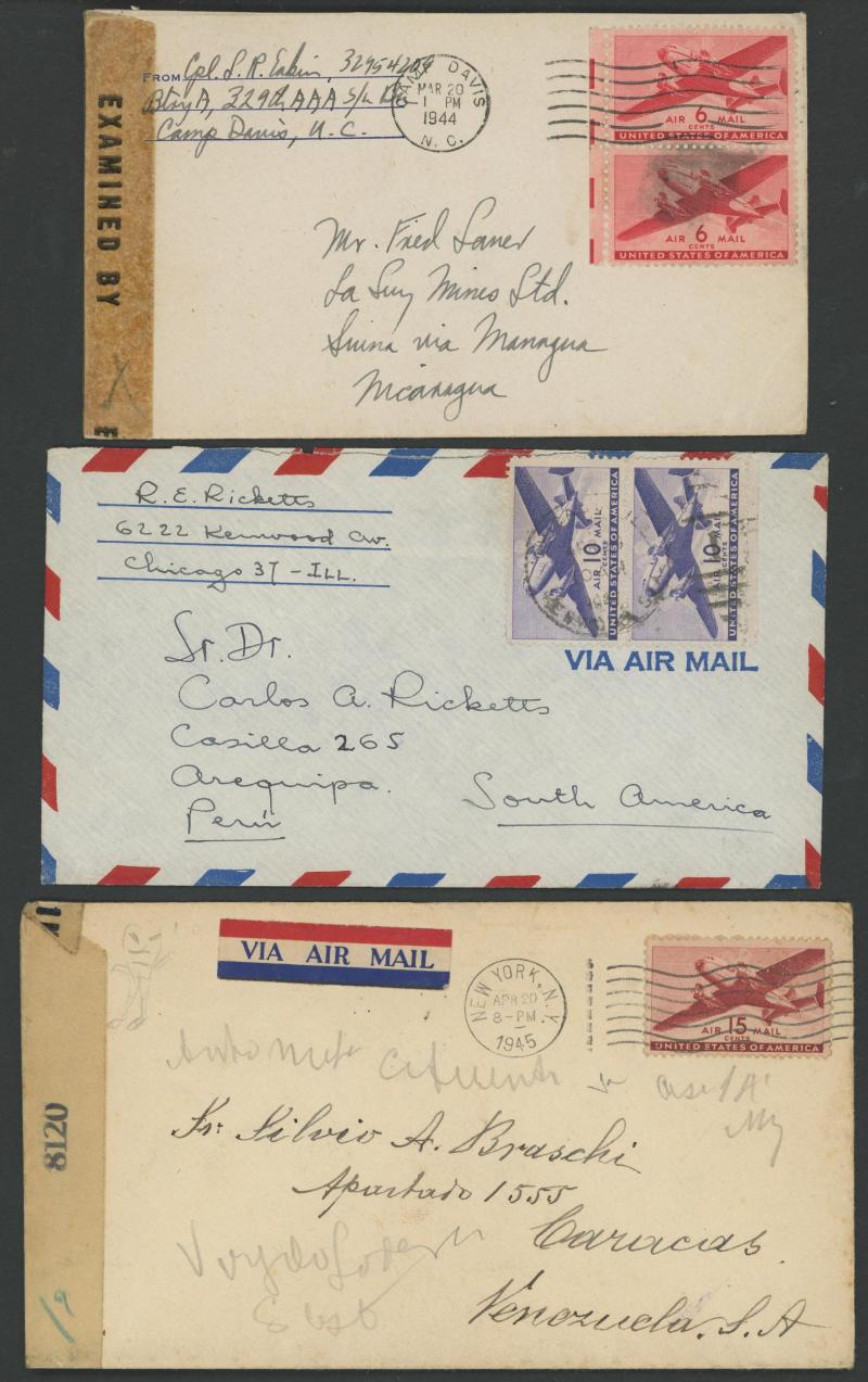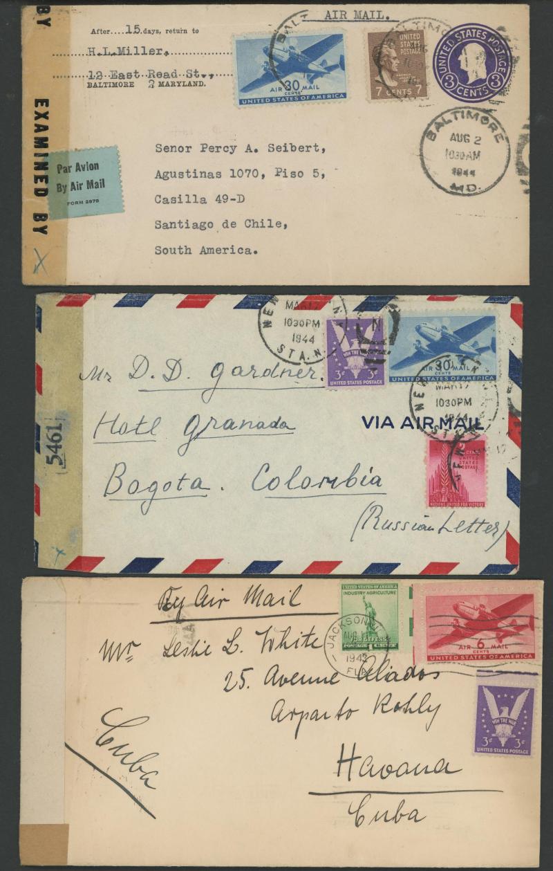 including Possessions Canal Zone, Hawaii and Puerto Rico (one Special Delivery), Asia China, Iran, Palestine and Turkey, Latin America Argentina (one from their Embassy in Washington), Brazil (one underpaid), Chile, Colombia, Cuba, Dominican