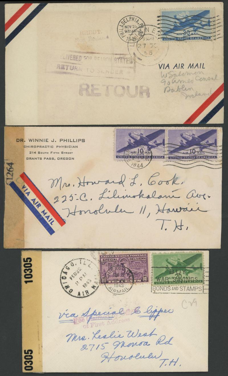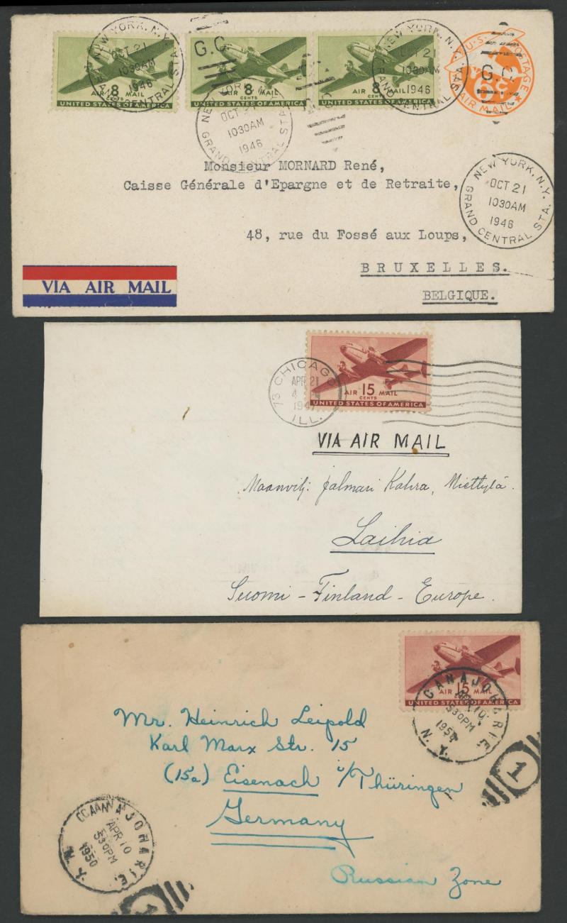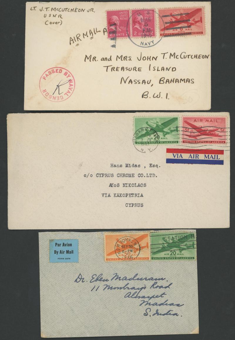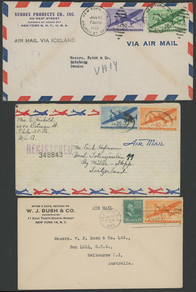 1940s commercial (mostly) & philatelic airmail covers all franked with Transport Series with denominations to 50c and destinations