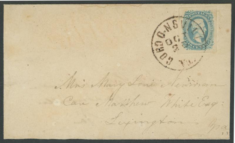 CIVIL WAR - CONFEDERATE STATES: circa 1863 apparently handmade envelope to "Lexington Pa" with General Issues Jackson 10c blue Die