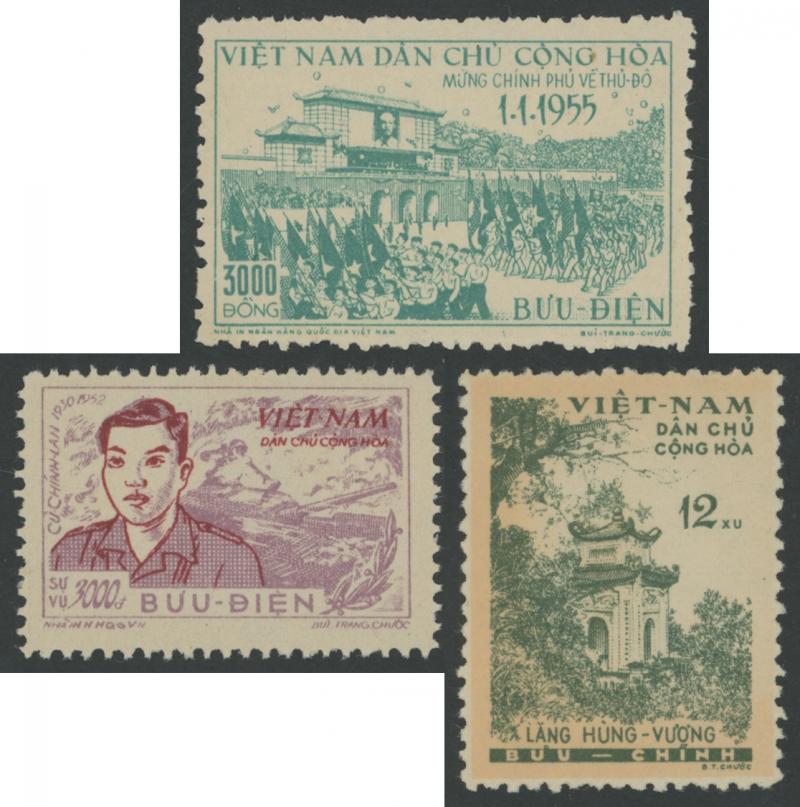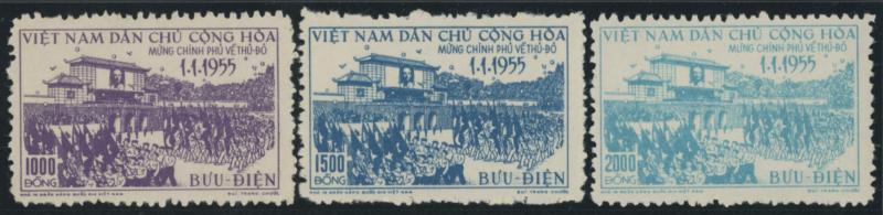 NORTH VIETNAM: 1956 Government Return to Hanoi 1000d to 3000d set SG N42-N45, centring variable & characteristic rough perfs, the
