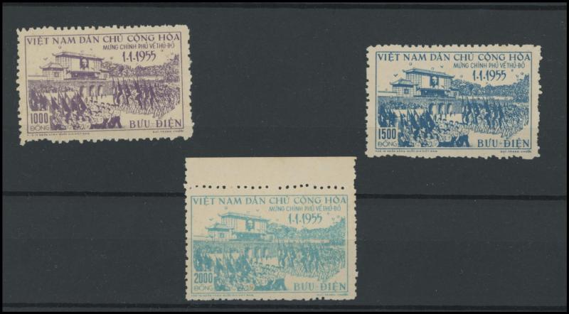 NORTH VIETNAM: Mint selection comprising 1956 Government Return to Hanoi 1000d to 3000d SG N42-45 no gum as issued, 1956-57