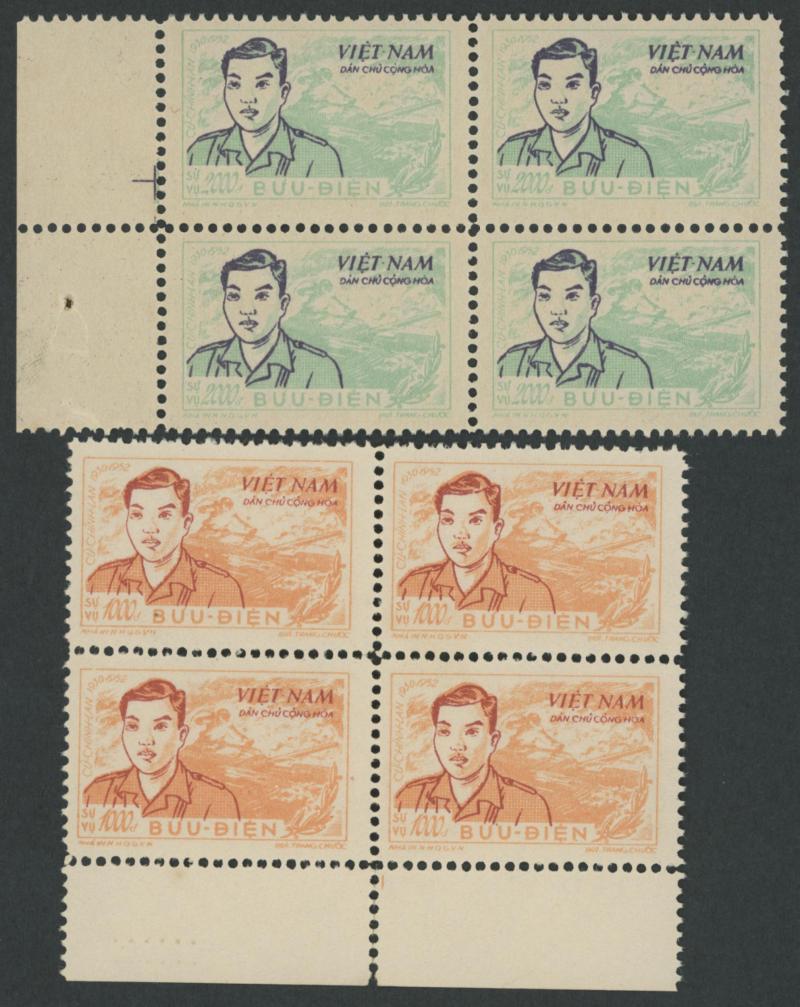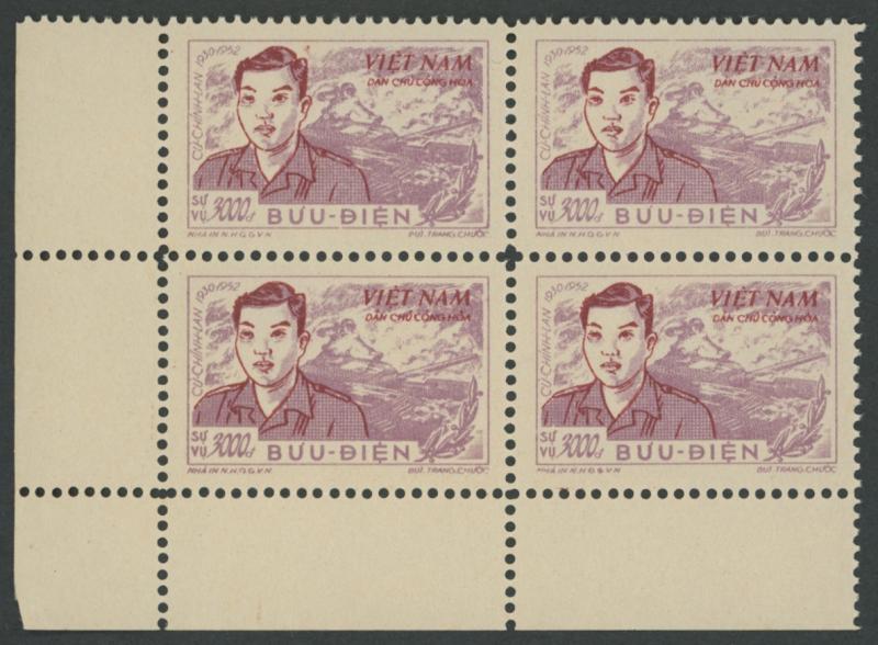 NORTH VIETNAM: 1956-57 Cu Chinh Lan Commemoration (Officials) 20d to 3000d SG NO56-59 marginal blocks of four, 100d with pen