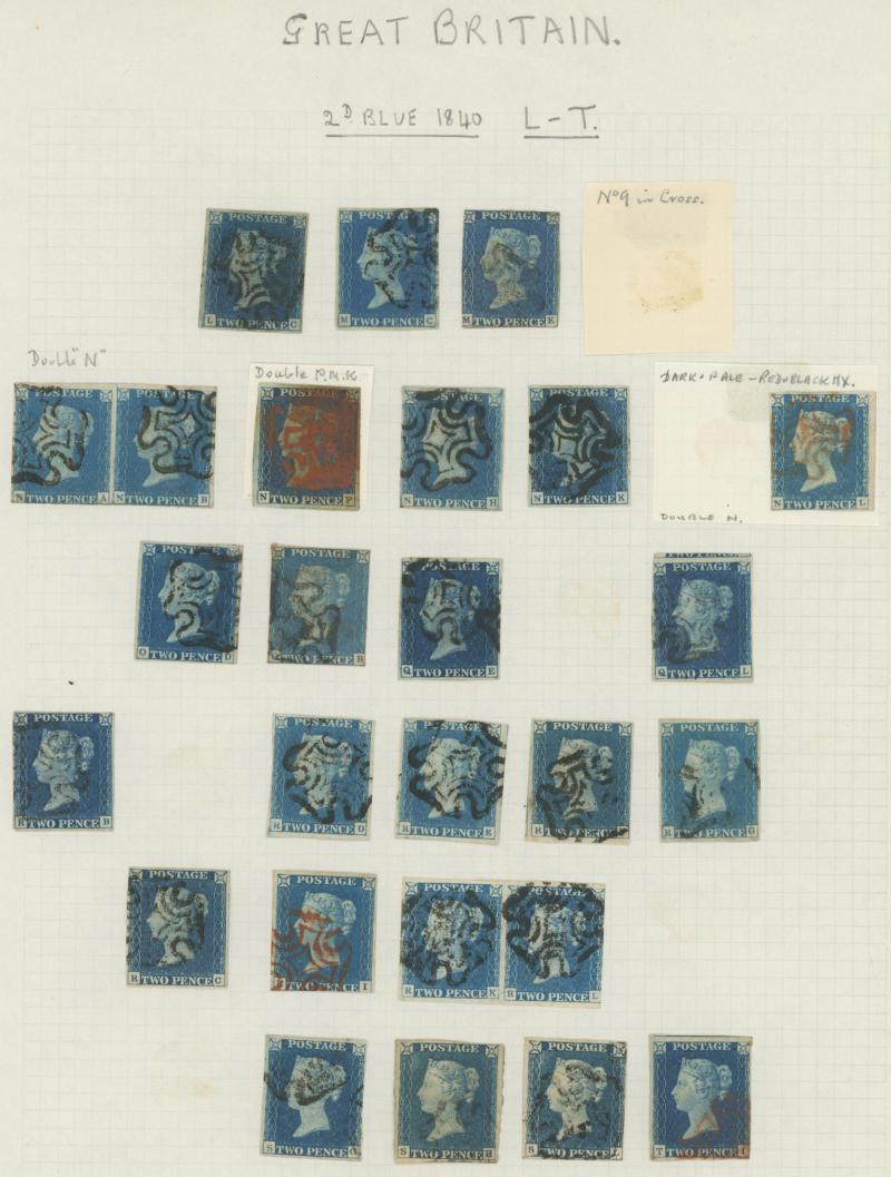 QV single-volume collection predominantly used from 1840 1d black x2, 2d blue and most 2d blue plates, 1½d both plates (Plate 3