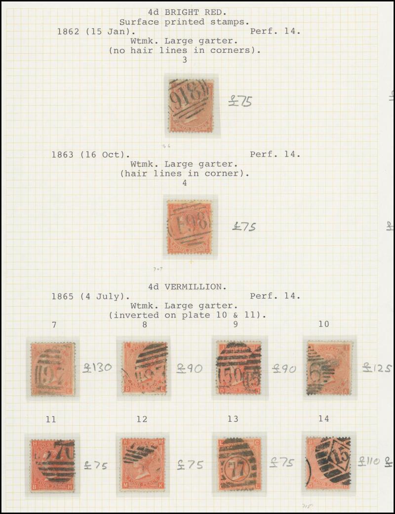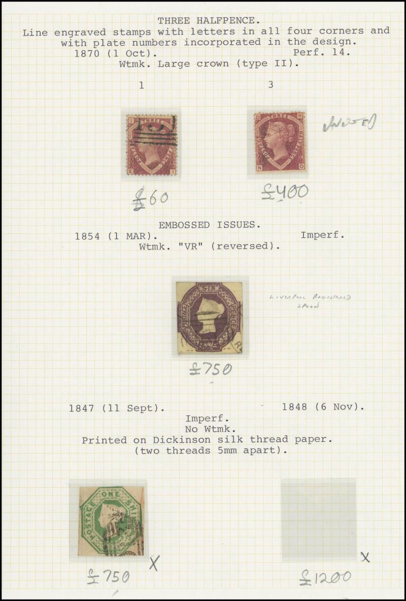 unused), Embossed 6d, 10d & 1/-, 1841 1d red imperforate Ivory Heads, 1864 Letters Penny Red all plates except 77 & 225, Surface-Printed extensive range of Plates of 2½d rose, 2½d blue, 3d rose, 4d red, 4d sage-green Plates 15 and 16, 4d brown both