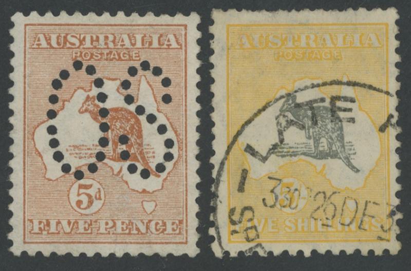 (unused, no gum) and SMult Wmk 5/- postally used.