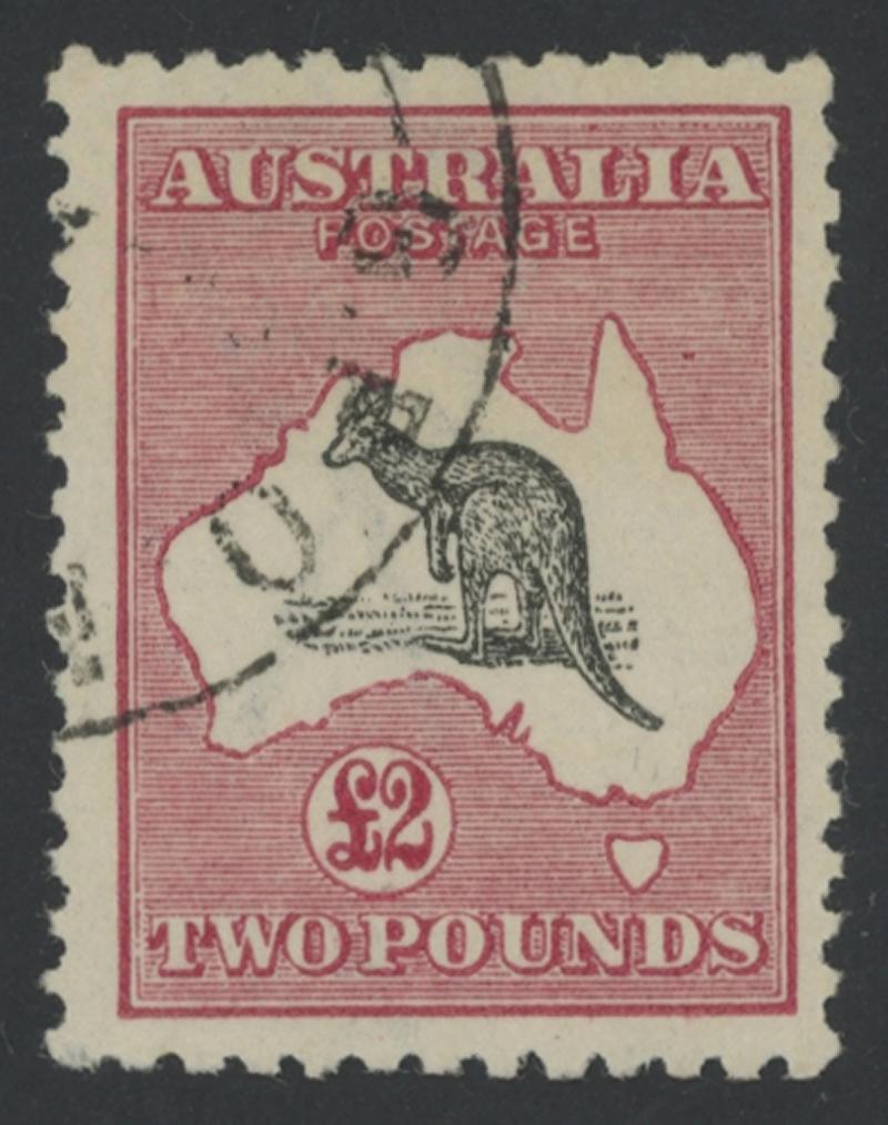 £2 black & crimson SG 45a, well-centred, CTO with 'GPO MELBOURNE' cds, no gum, Cat $6500 compared to $4500 (£3250) for postally