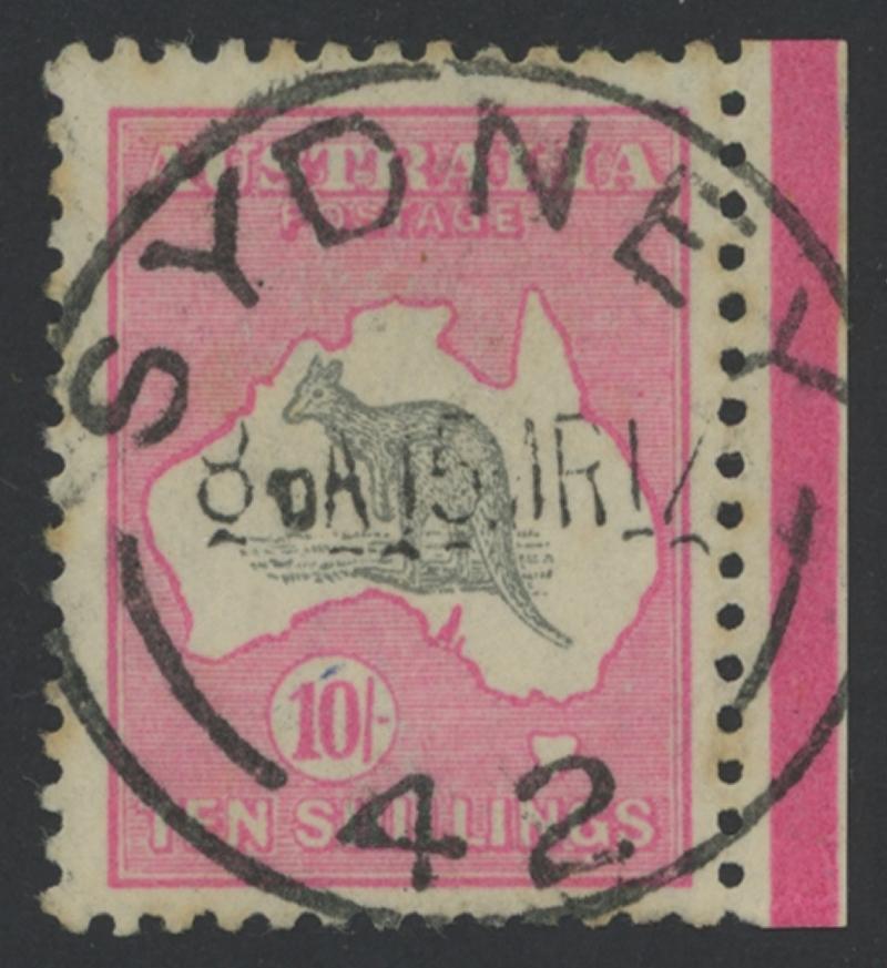 10/- grey & pink ACSC 48A (SG 43) marginal example with jubilee line at right, well-centred, superb 'SYDNEY/15MR17/ 42 ' cds, Cat