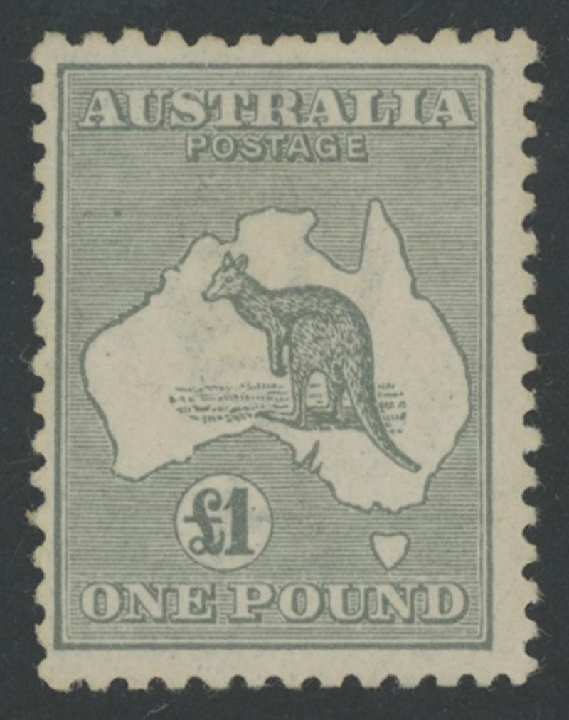 £1 grey ACSC 53A (SG 75), light aging, very lightly mounted, Cat $1000 (£650). (Image1) (Image2)