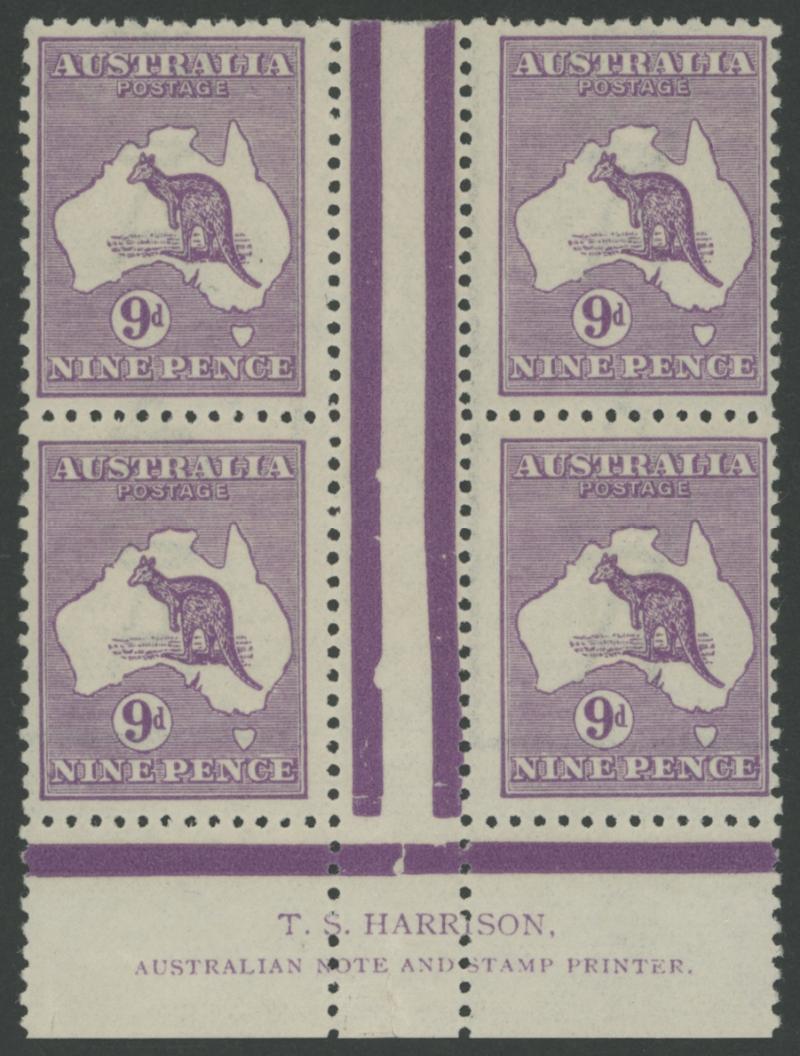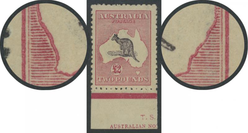 South Coast of New South Wales, marginal example with part 'T.S. [HARRISON]/AUSTRALIAN NOT[E PRINTER]' imprint proving this to be [Pos L60], characteristic but better-than-usual rough perfs, very lightly mounted, Cat $6500 (£5500) for a normal