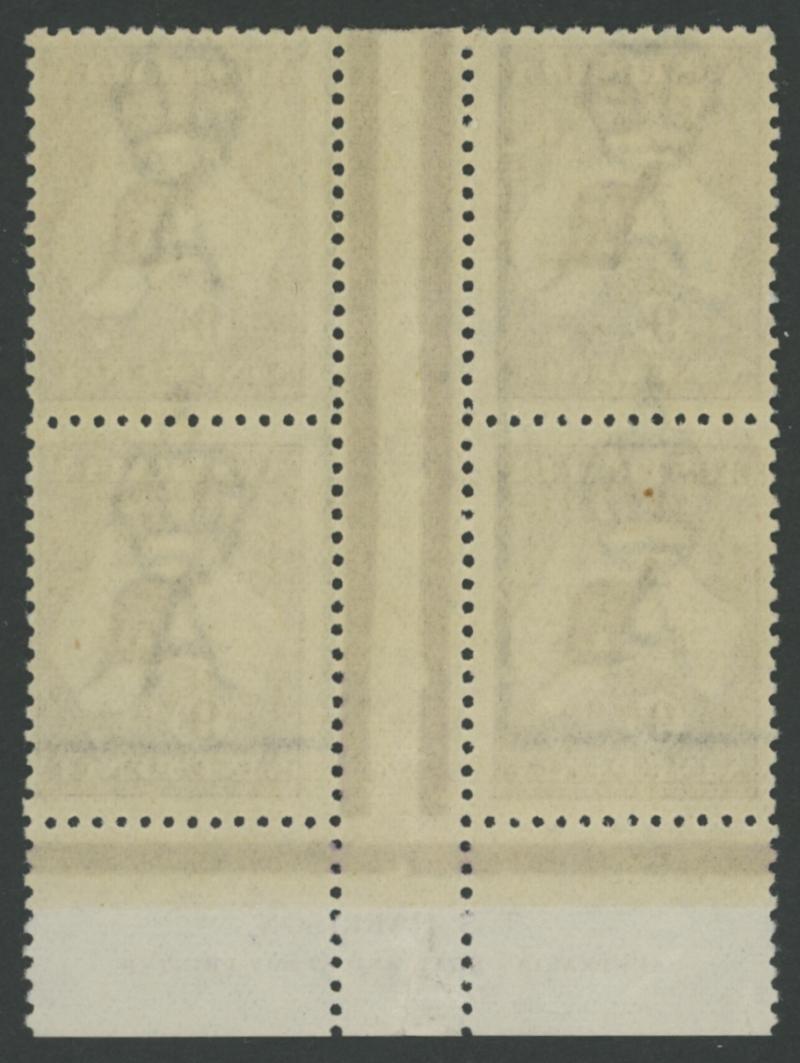 9d violet Harrison Plates Die IIB SG 39b Plate 3 TS Harrison Imprint block of 4 ACSC 27(3)zb, tiny closed tear in the lower margin