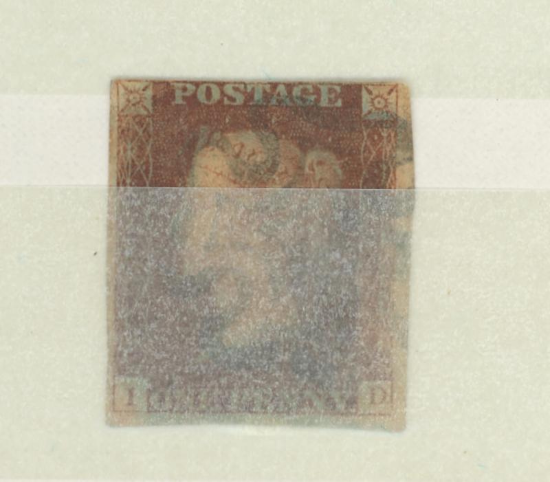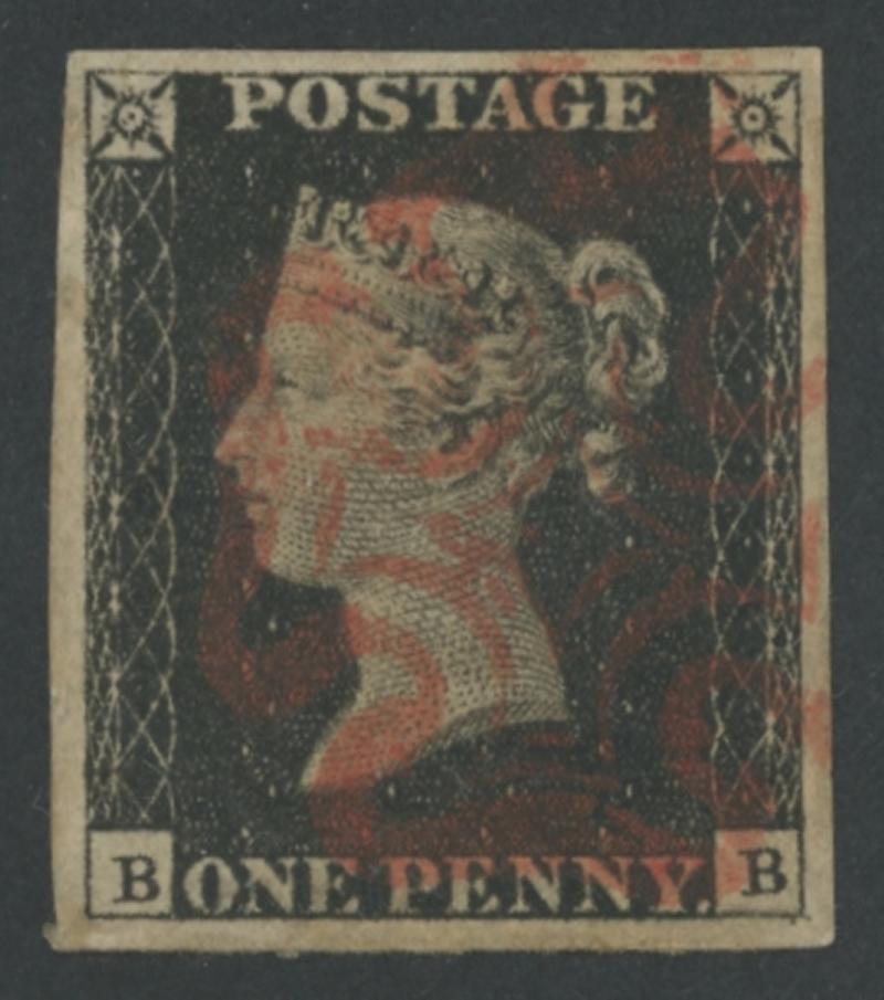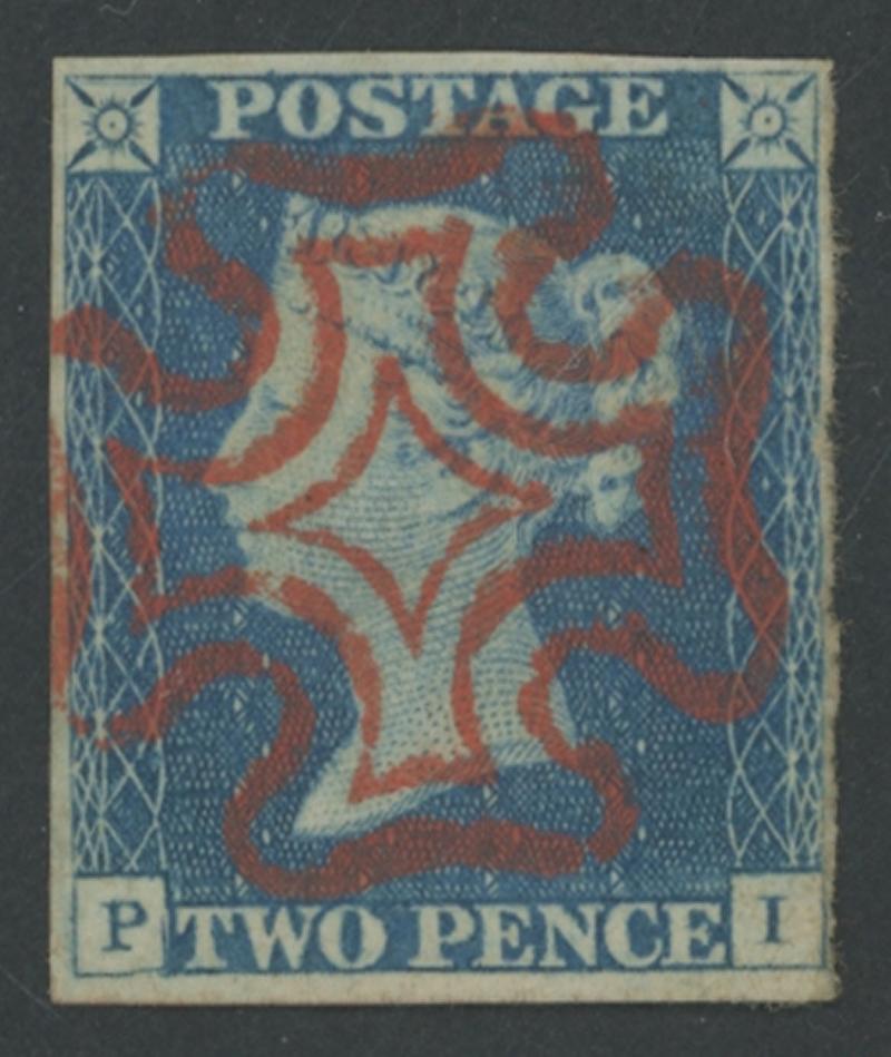 'socked-on-the-nose' Maltese Cross cancel in red, remarkably still with large-part gum, Cat £975. (Image1) (Image2)