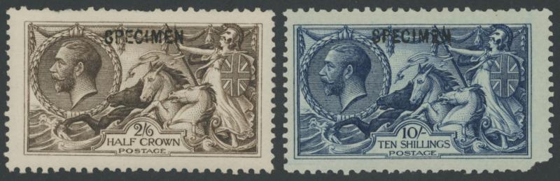 fault, large-part gum) 2/6d 5/- & 10/-, Jubilee 3d & 1/- green (faded), KGV with large-part gum Downey Head 1d, Sideface Imperf ½d x2 & 1d, and Waterlow Seahorses 2/6d & 10/- (corner fault & gum redistributed), significant catalogue value.