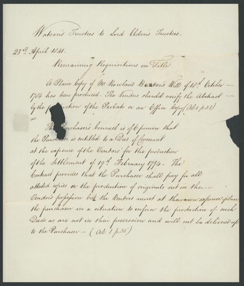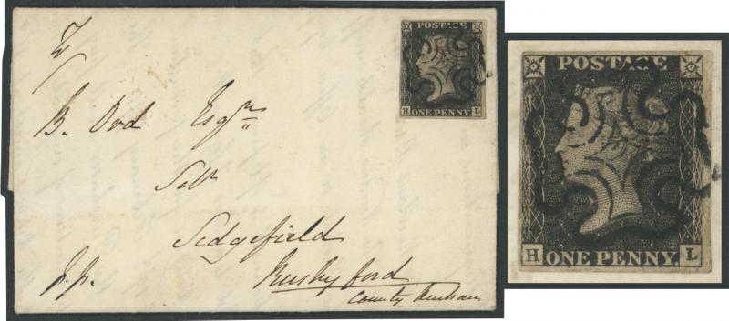 to entire to Sedgfield, County Durham with fine complete London 'AP-23/1841' despatch backstamp, two light file folds clear of the adhesive & markings, the stamp very fine, SG Specialised Cat £16,000 on cover. RPSL Certificate (1981). (Image1) (Image2)