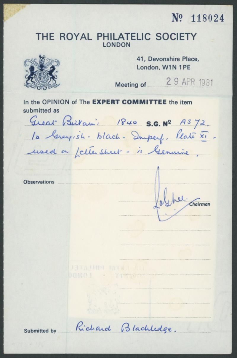 attractive. Identified from 'Plating the Penny Black' by Charles Nissen and the similar work by Ted Proud. (Image1) (Image2)
