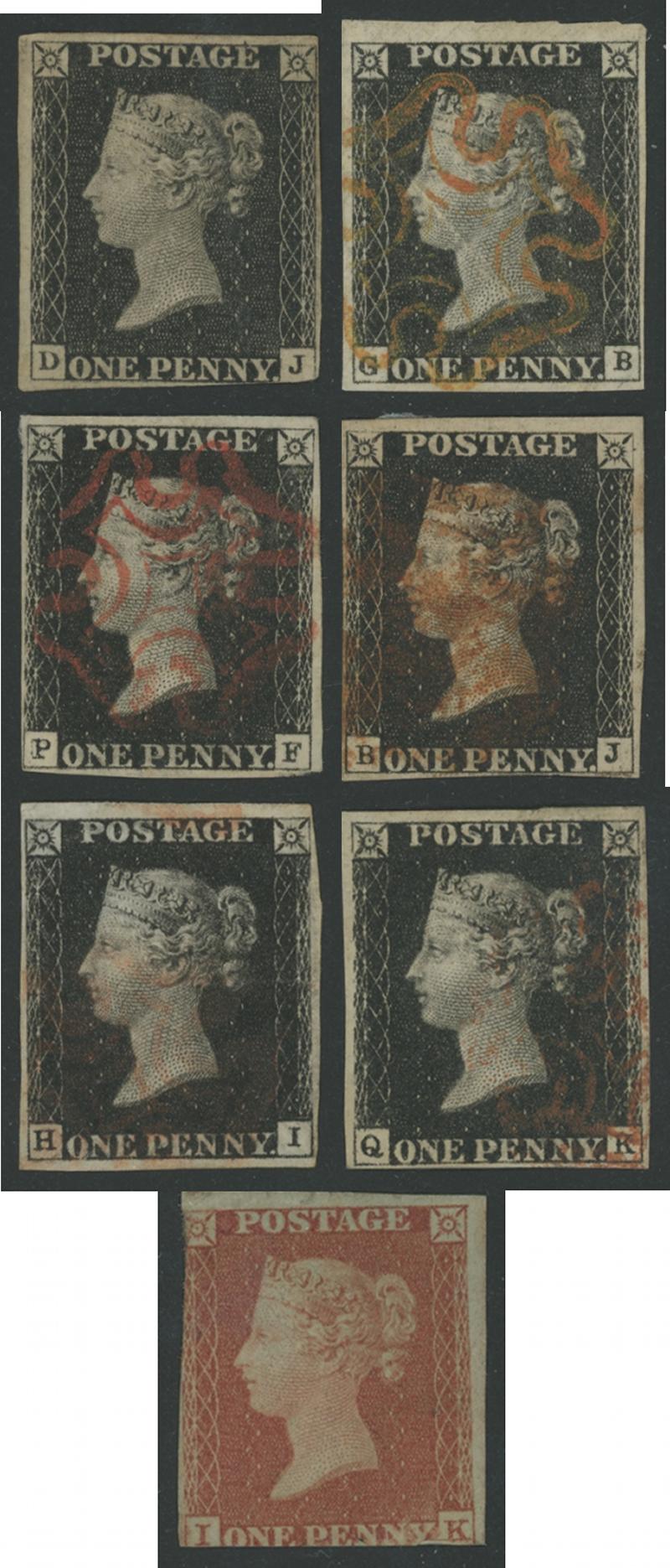 Cat £7500), also Penny Red group x28 probably all printed from black plates (but this has not been confirmed by us), also in very mixed condition including one apparently unused (£2500), Cat £13,000+ plus the two apparently unused stamps.