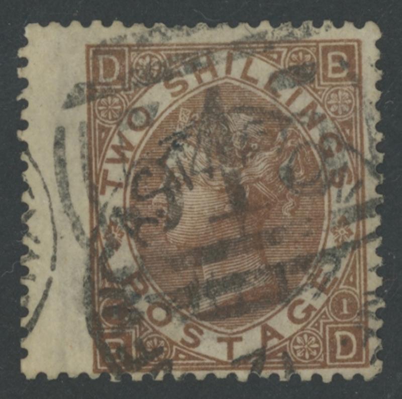 1867-80 QV Surface-Printed Large Uncoloured Corner Letters Spray of Rose Watermark 2/- chocolate- brown SG 121 wing-margin example