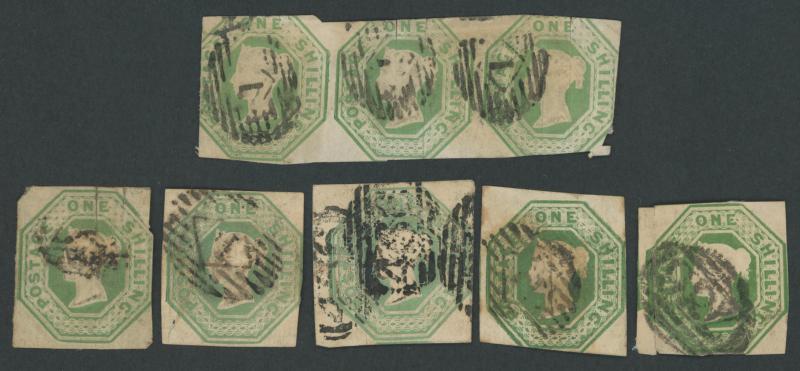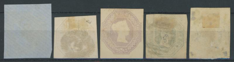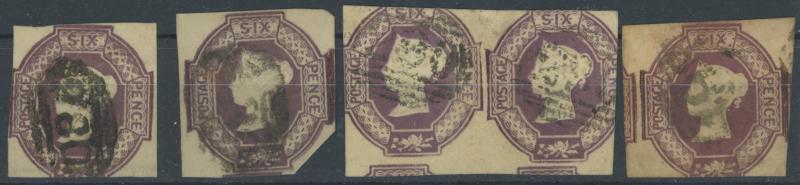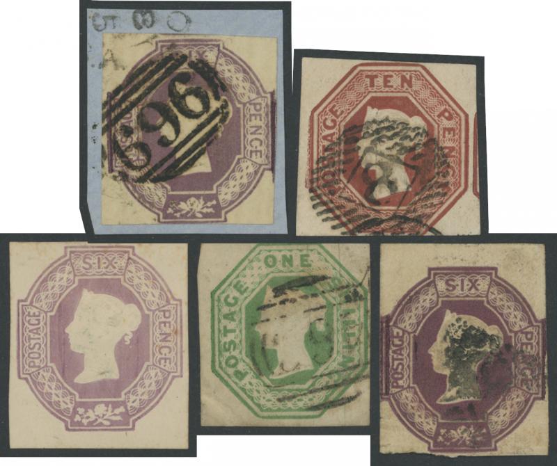1847-54 Embossed group all cut-square comprising 6d shades x12 including a pair plus a postal stationery cut-out, 10d (just touched