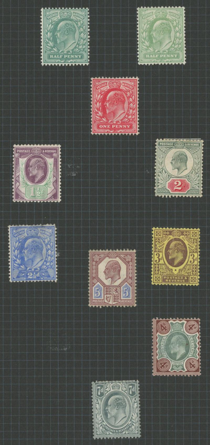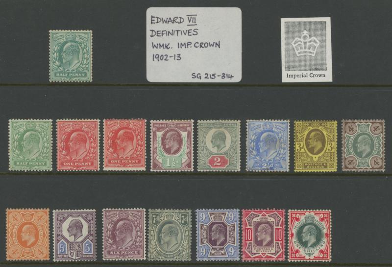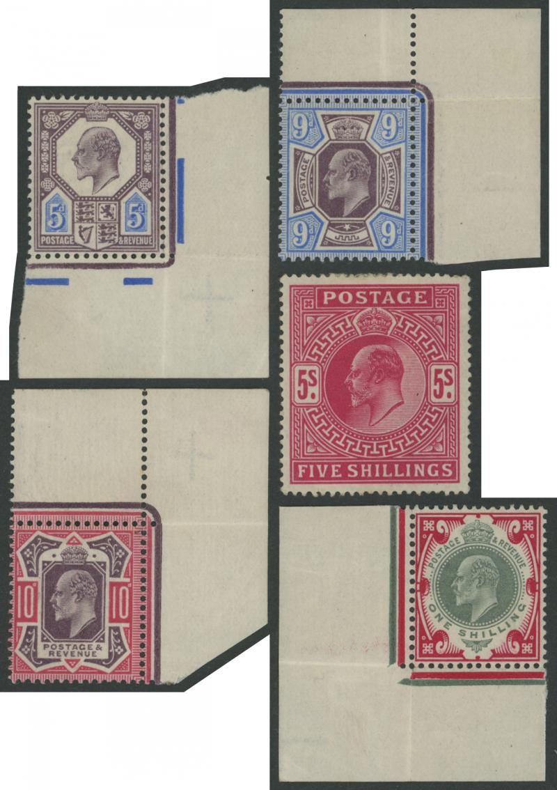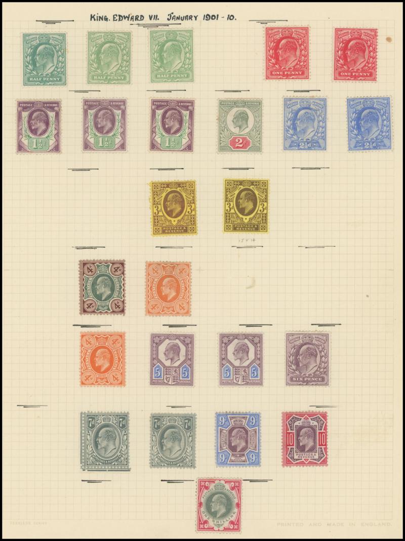 1902-13 KEVII Definitives selection with at least four simplified sets to 1/- (one set marginal and unmounted), 5/- carmine (light