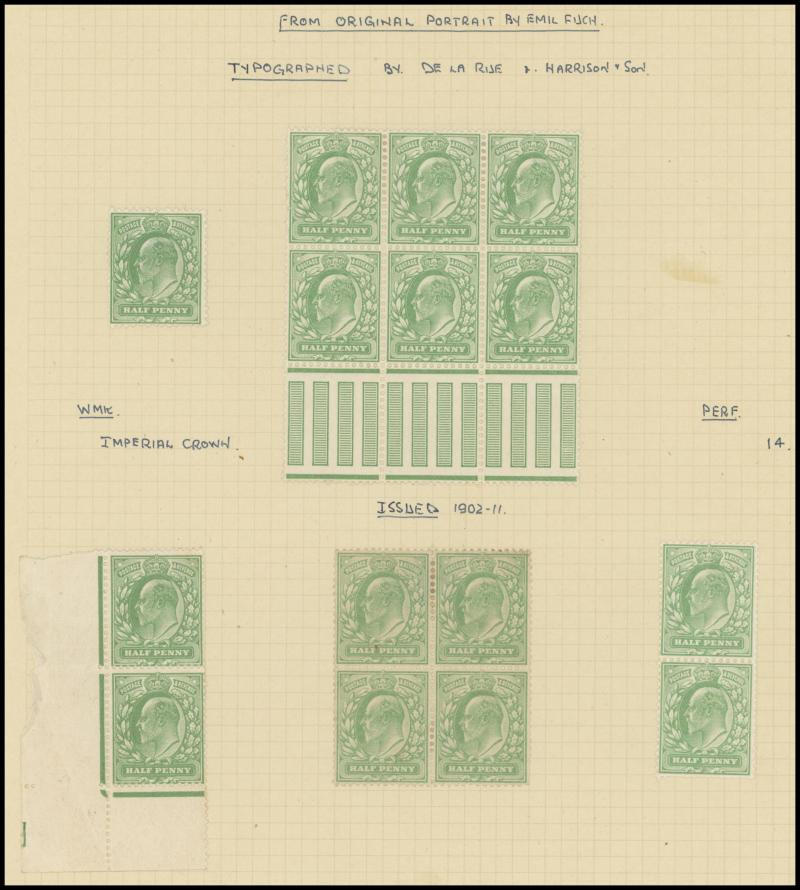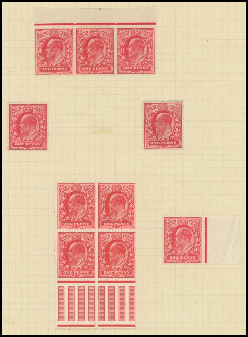 bend), lots of shades, Somerset House (?) 2d block of 4 */**, 7d corner block of 6 (3x2), Control Numbers ½d x43 items & 1d x38 items with many in pairs strips or blocks, a few Inverted Watermarks, generally fine to very fine, Cat £6000 approx for