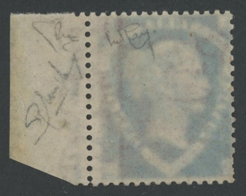 1870-79 QV Line-Engraved New Values Shield 1½d rosy mauve on Blued Paper SG 53a [OL] marginal example from the right of the sheet